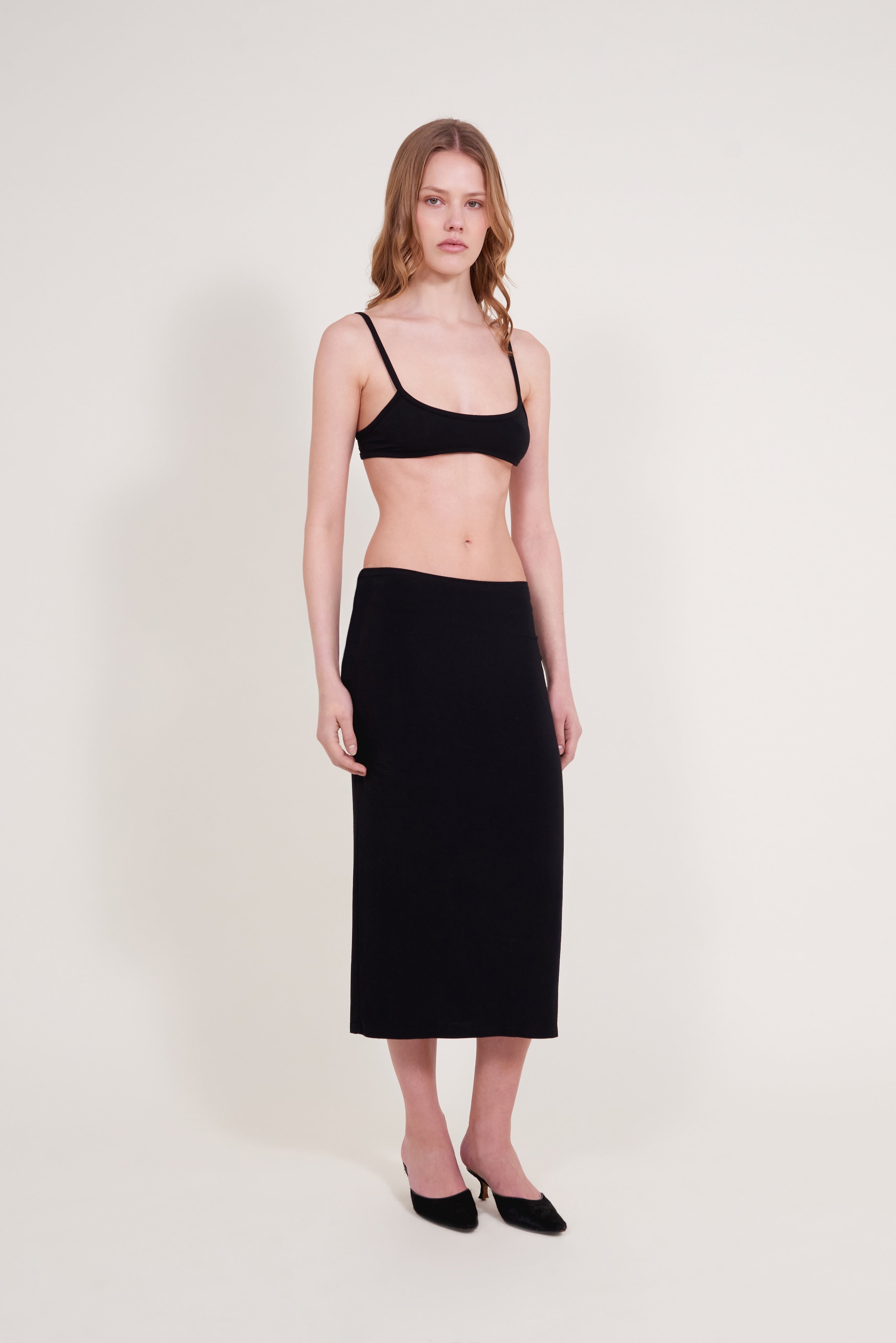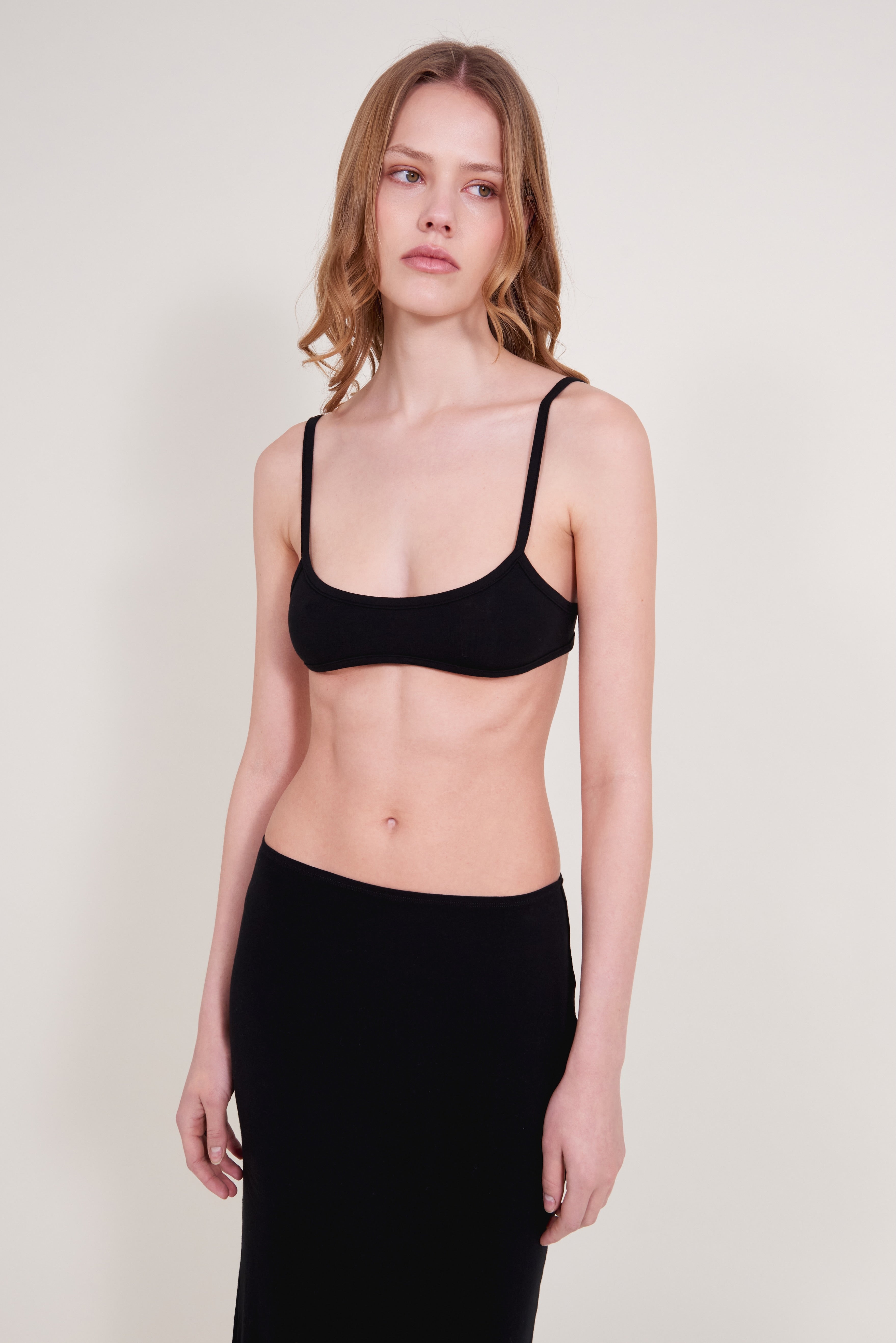 The Bralette is a minimal, form-fitting top, crafted from the softest bamboo jersey fabric. Designed with delicate straps and subtle shaping, it offers gentle support and a barely-there feel. Perfect as a base layer, styled underneath a sheer top or worn alone.
