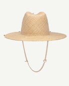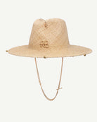 The hat is crafted from natural straw and features an accent piercing along with the minimalist RB logo. A gold chain adds functionality—the hat can be worn with or without it, adapting easily to your personal style and needs.