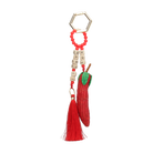 Mercedes Salazar's hand-woven keychain made of natural raffia fibe, perfect for attaching to any purse, bag, or backpack. Handmade by master artisans in Mercedes' workshop in Bogotá, Colombia.