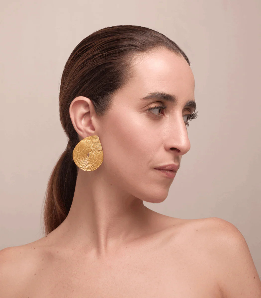 These earrings feature a design inspired by the organic forms of nature, capturing the essence of the TAIRONA culture. The soft lines and curved shapes reflect the harmony and fluidity of their art, creating a piece that is both contemporary and timeless.