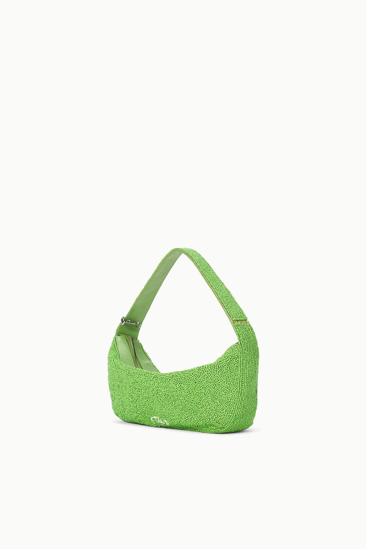The Demy Shoulder Bag is a chic convertible bag that can be worn over the shoulder or hand held. It features signature hardware clasp on the strap to convert the shape to a handheld pouch. This style features a fully beaded body, a top zipper, and signature hardware.