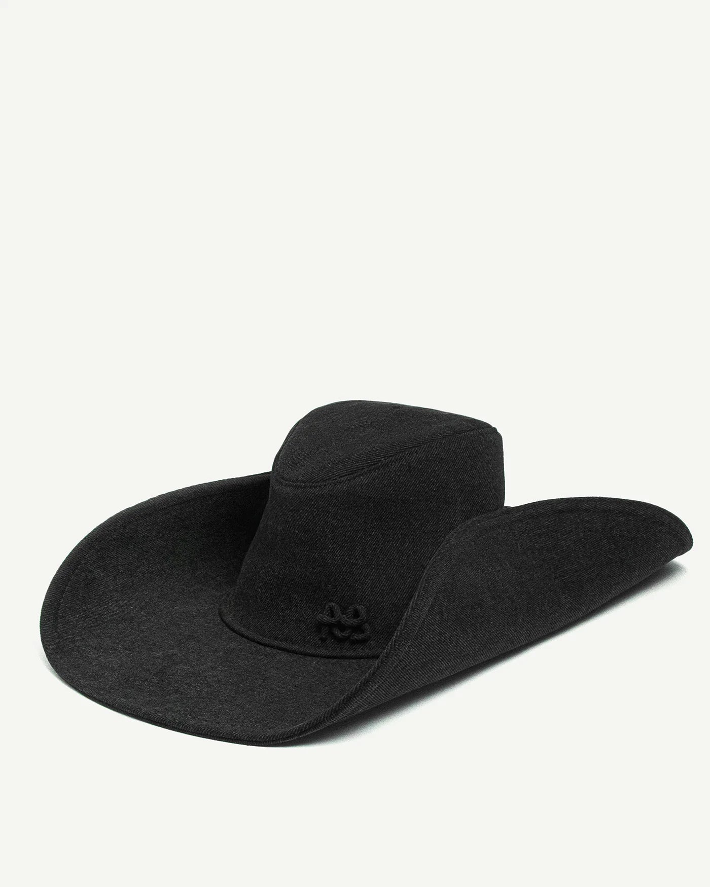 The piece is crafted from black denim — a modern interpretation of the brand’s classic cowboy hat. The accessory maintains its structured shape, giving any look a bold and defined silhouette.