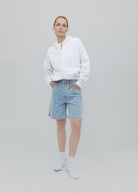 The Lola is meant to hit above the knee and features a traditional button fly, custom hardware and our signature 'SH' embroidery.