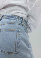 The Lola Short is an A-line, high-waisted, wide leg short that features a scrunch waistband and side seam cut-out details.