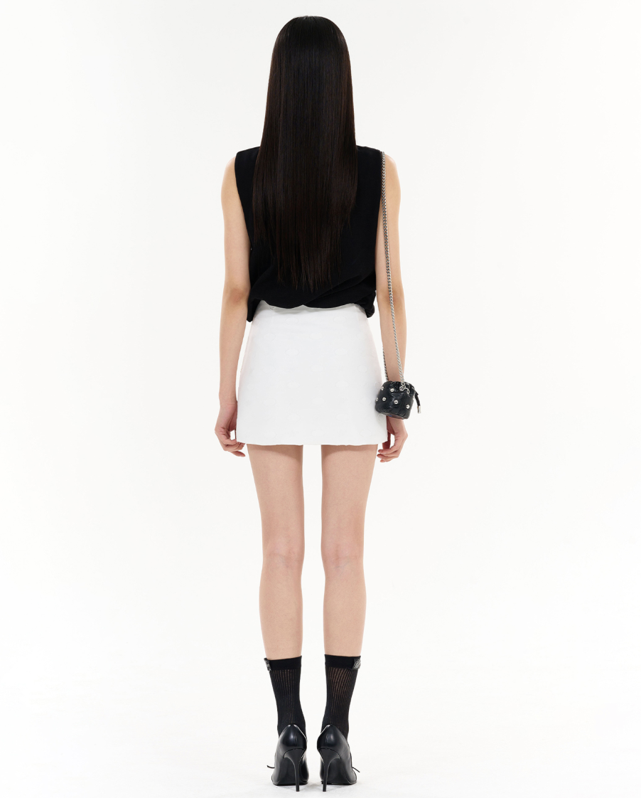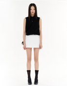 This black sleeveless polo reimagines a classic silhouette with modern edge, featuring a ribbed spread collar, three-button placket, and a subtle embroidered logo at the chest. A twisted hem adds unexpected structure and shape, while the soft, stretch-infused fabric blend ensures a sleek fit. Finished with tonal contrast panels, it’s a versatile piece that balances sporty polish with contemporary detail.