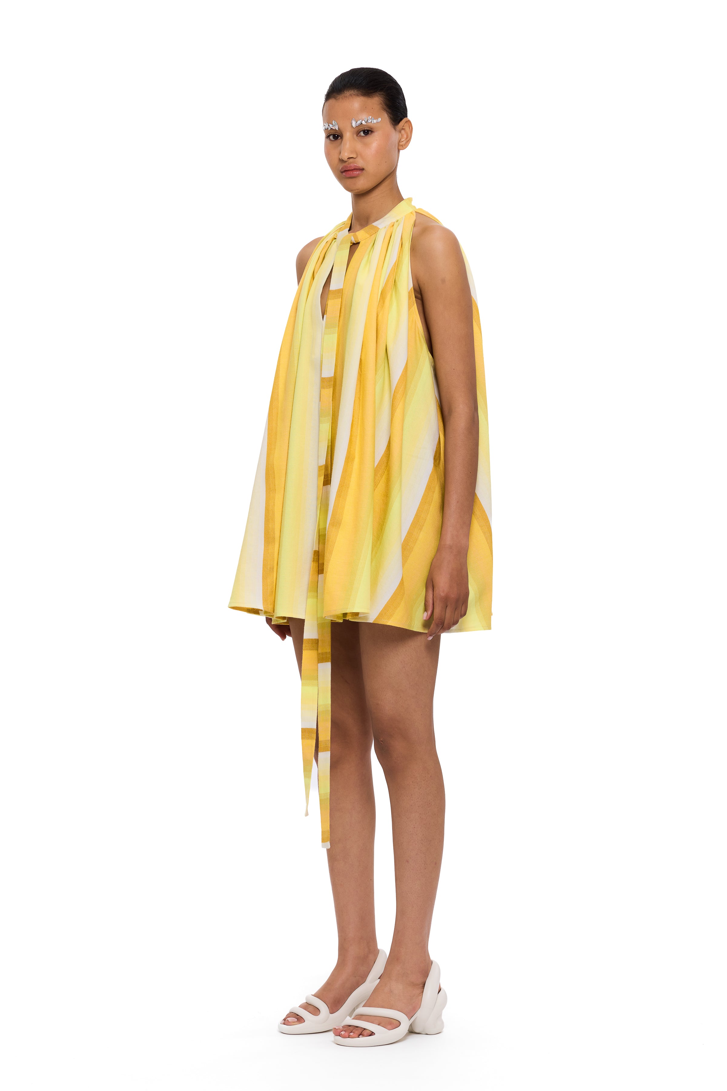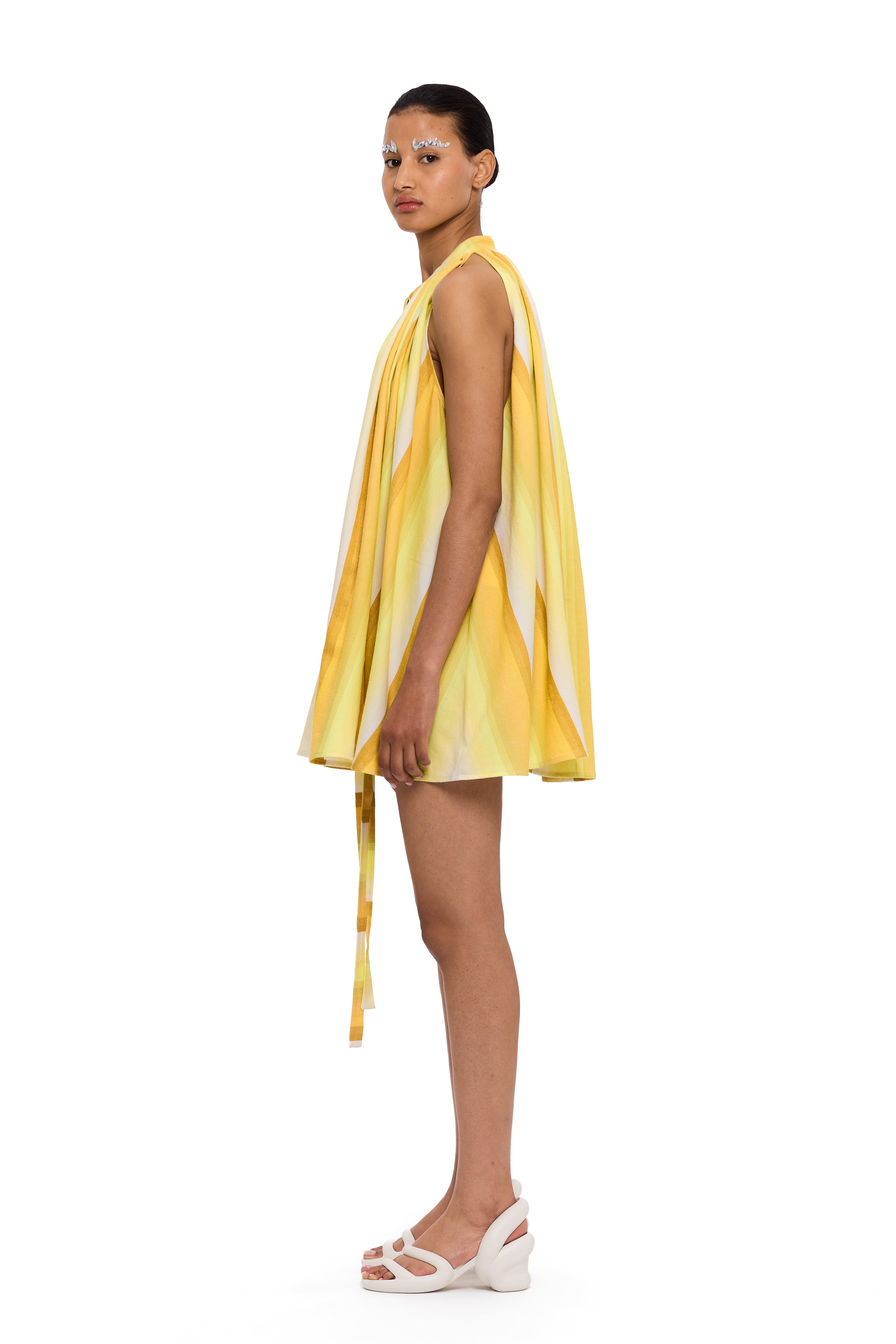 The Mini Cape Dress is a relaxed, effortless silhouette, handwoven from high-quality cotton yarns, offering a refined expression of craftsmanship. This style features a softly structured cape overlay and a fluid mini length, creating an elegant shape with ease of movement.