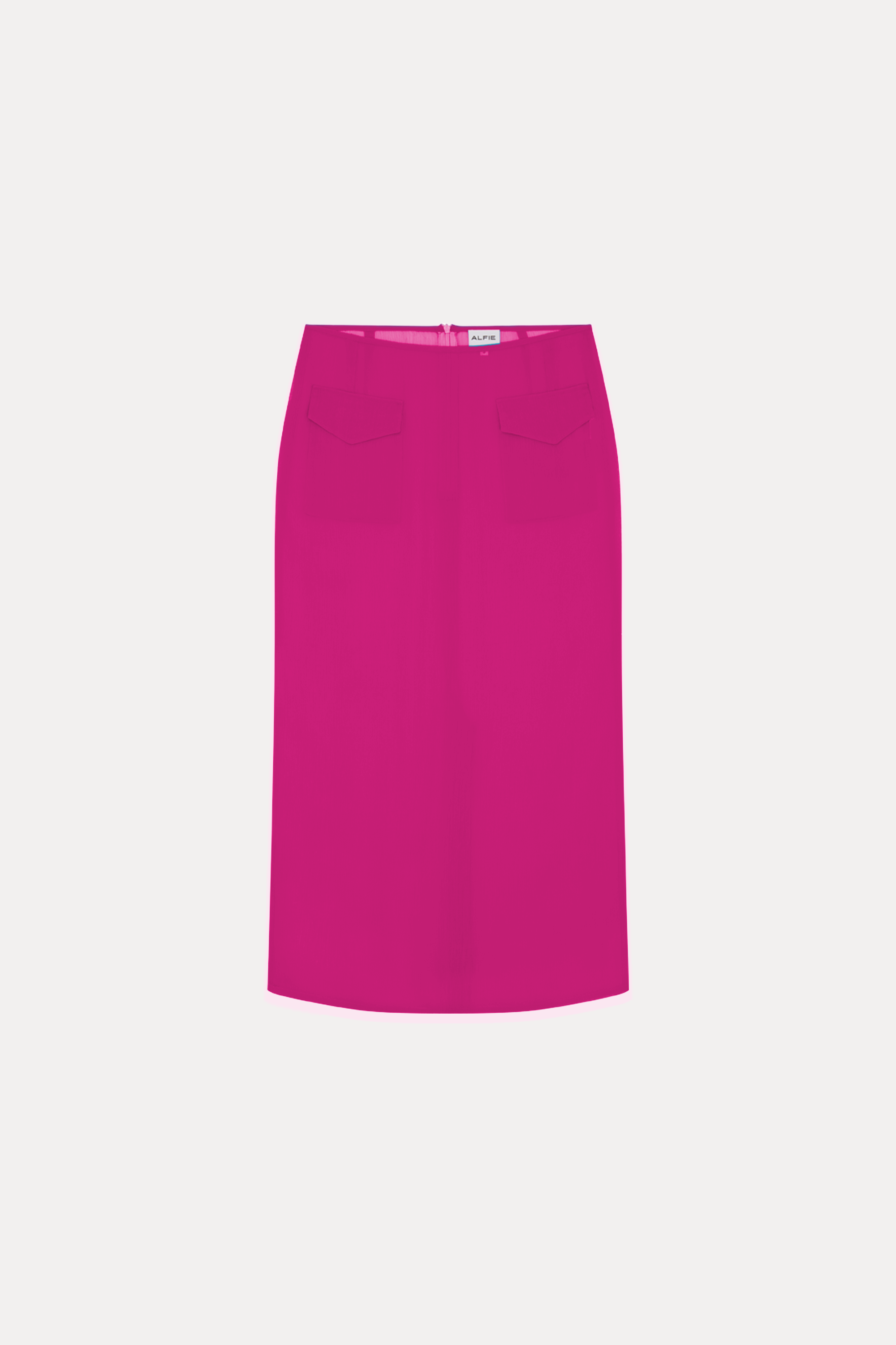 ALFIE's signature straight midi skirt in an exclusive colorway, with a low waist and a slit at the back to offer comfortable movement. An invisible back zipper ensures a smooth, seamless fit. Sheer fabric delicately adorned with a soft pink floral print.