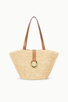 The Vista Tote is an easy summer tote crafted in our natural raffia, featuring their signature moon hardware closure.