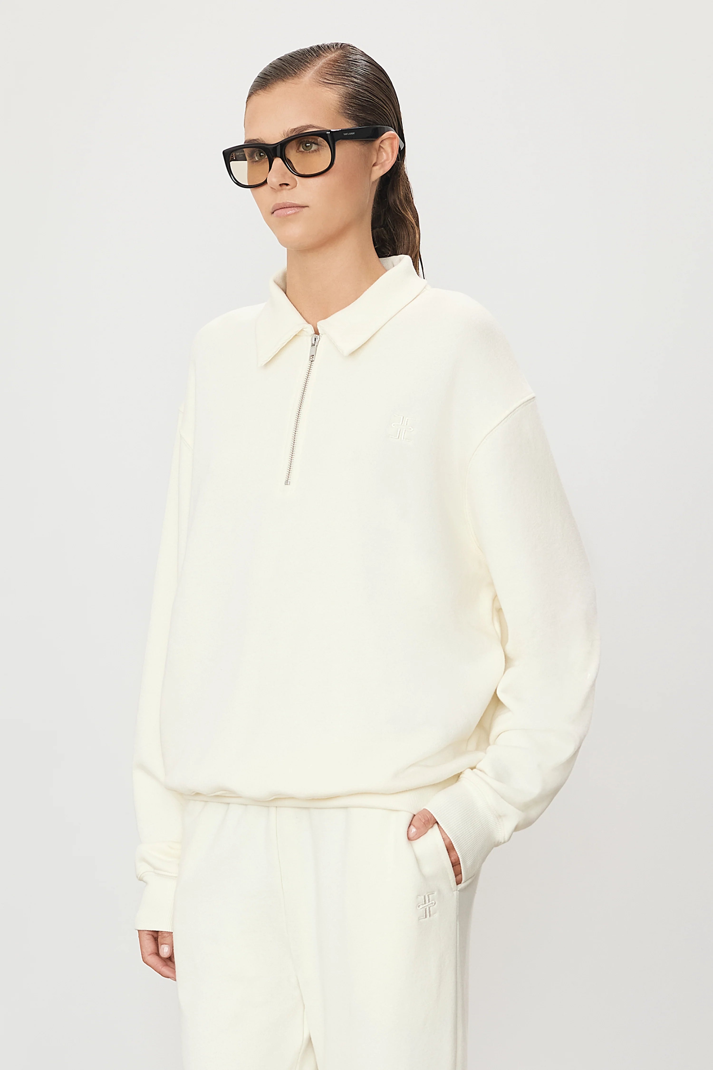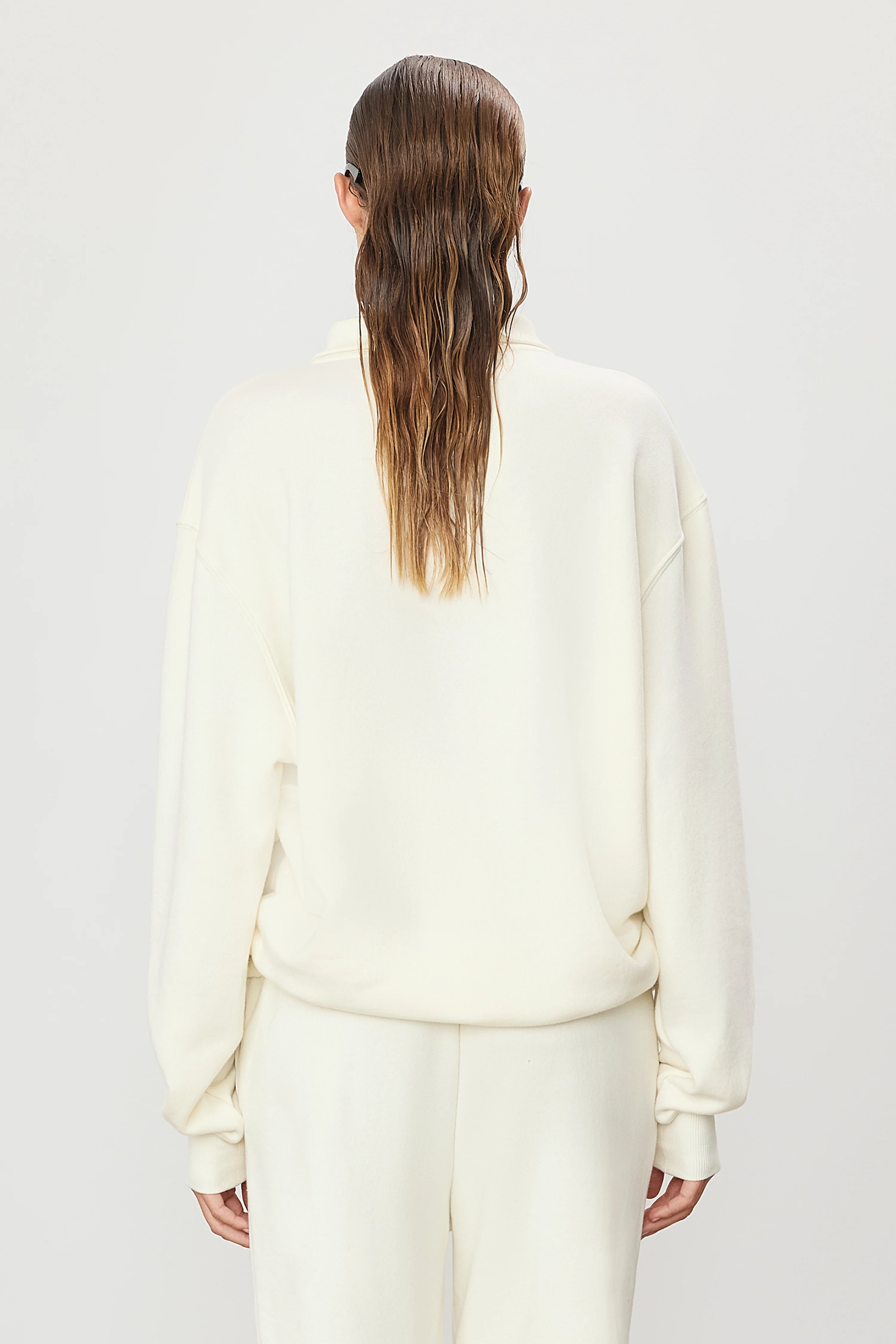 ÉTERNE's Zip-Up Polo Sweatshirt is crafted from our ultra-soft French terry, offering a relaxed fit and half-zip placket—an elevated essential for everyday wear.