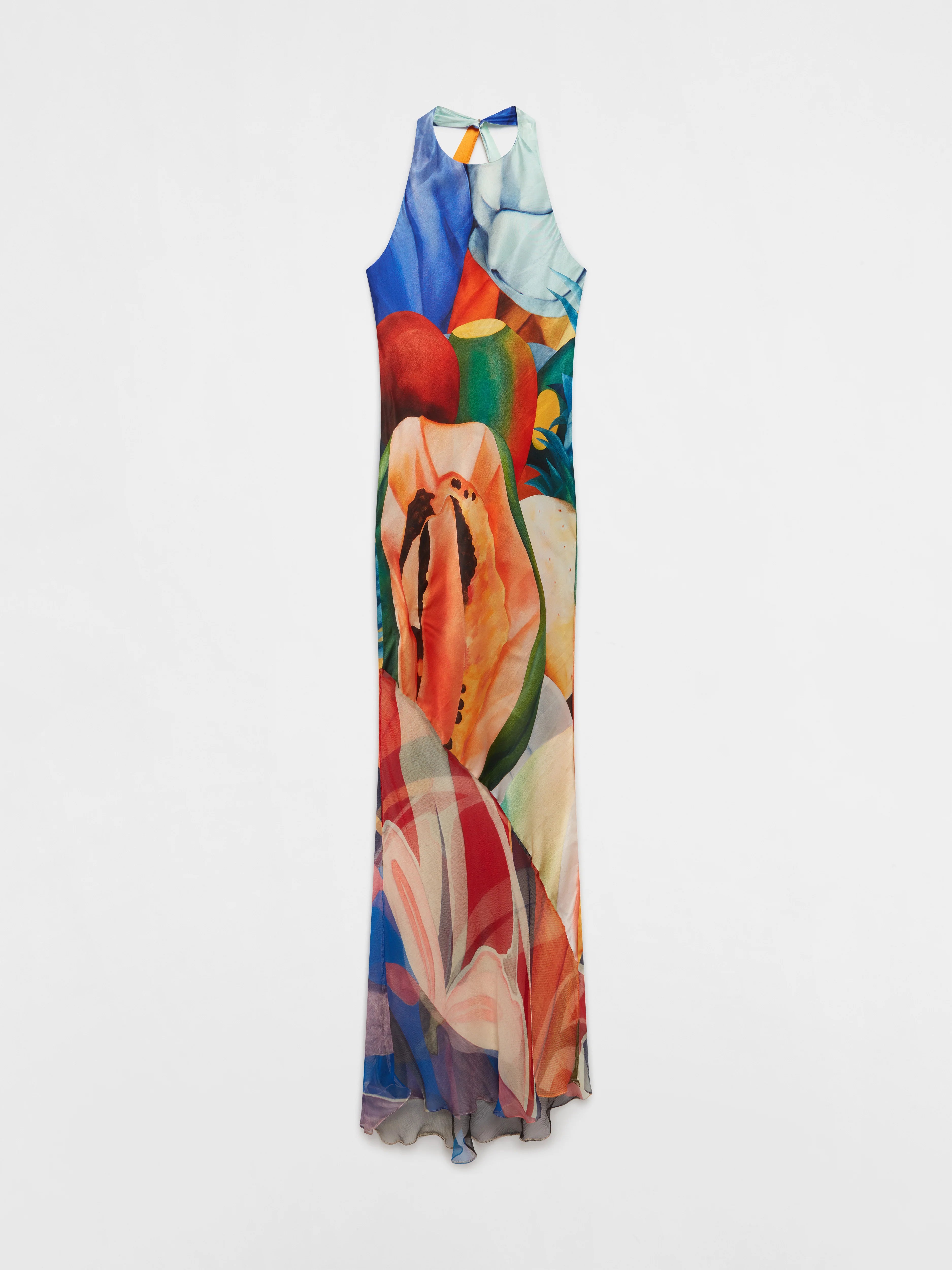 Inspired by the vibrant works of Colombian artist Ana Mercedes Hoyos, the Blue Salpicón Long Dress is where art meets effortless elegance. Crafted in lightweight silk, it’s made for warm-weather occasions—think garden weddings, coastal getaways, or summer evenings in the city. The fluid silhouette and striking print make it a standout piece you can dress up with heels or style down with sandals for a more relaxed look.