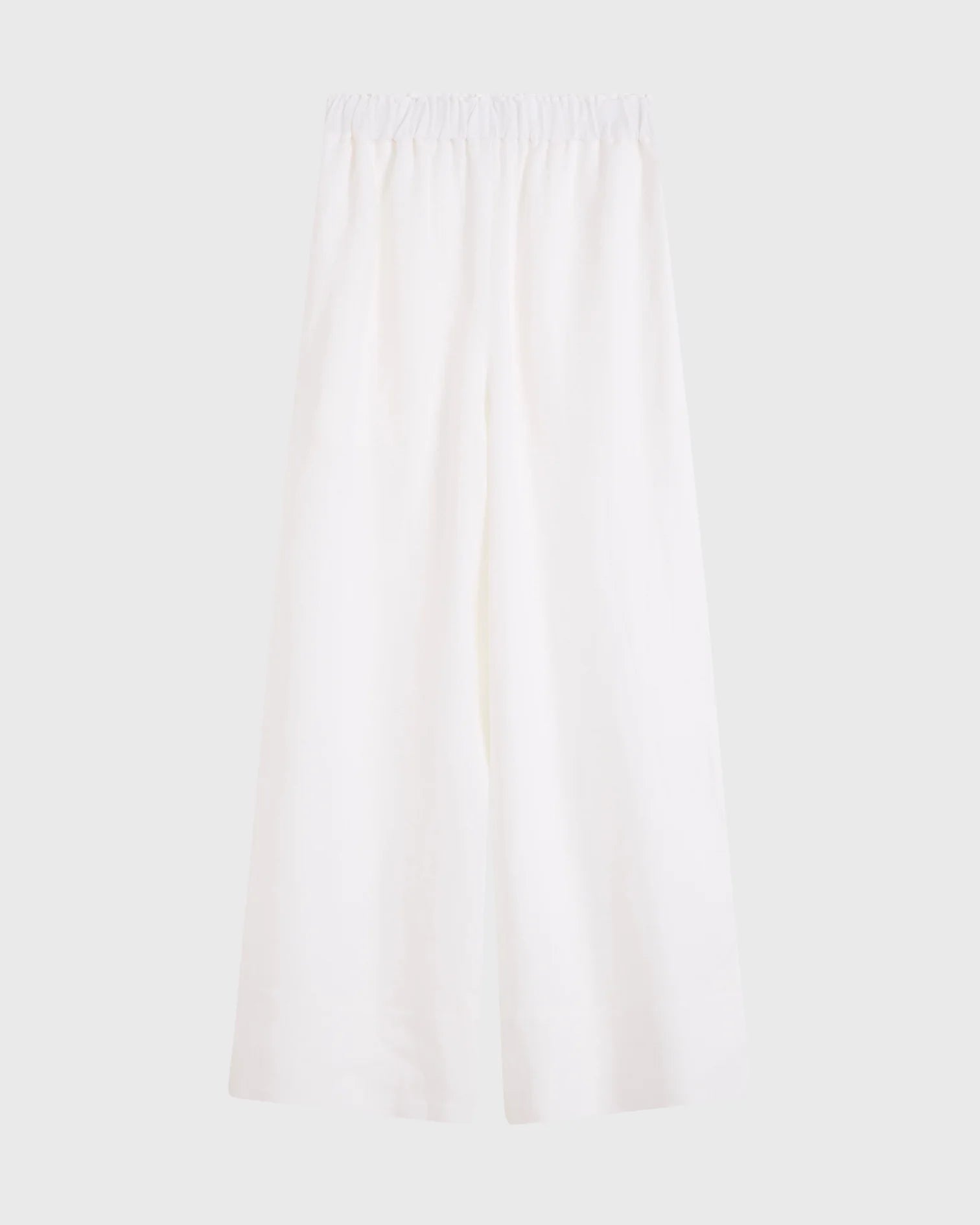 The Delphi Universal Pant in White combines comfort and effortless style, crafted from structured 100% organic linen. Designed with a relaxed fit, these wide-leg pants feature a wide elasticated waistband for a flexible fit and deep side pockets for practicality. The structured linen lends an elevated finish, making these pants perfect for casual summer wear or paired with a tailored top for a refined look.
