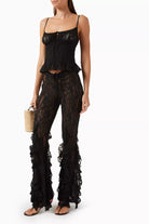 The Ruffle Pants flow with every step, tracing the body with sheer lace and cascading frills. Worn with the Slip Top, it creates an effortlessly sensual silhouette from day to night.