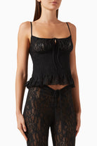 The Slip Top plays with delicate lace and soft shirring, embracing the body like a summer breeze. Perfectly paired with the Ruffle Pants for an effortless seaside silhouette.