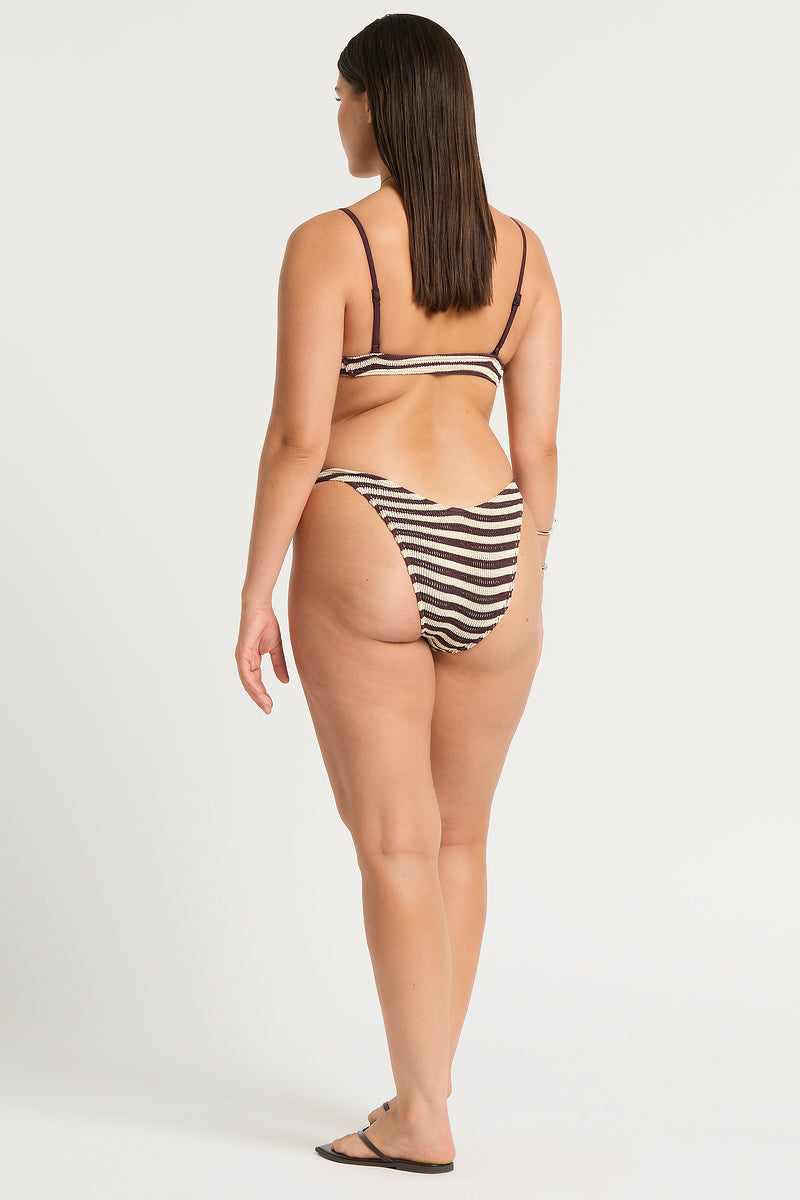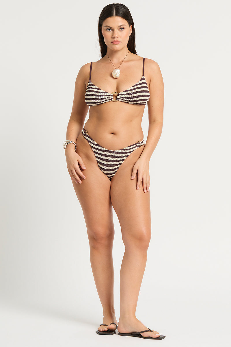 The Ring Scene Brief is a mid-coverage style, with thin sides and a curved waistline for an ultra-flattering fit. This style can be worn low, mid or high on the hip depending on your preference.