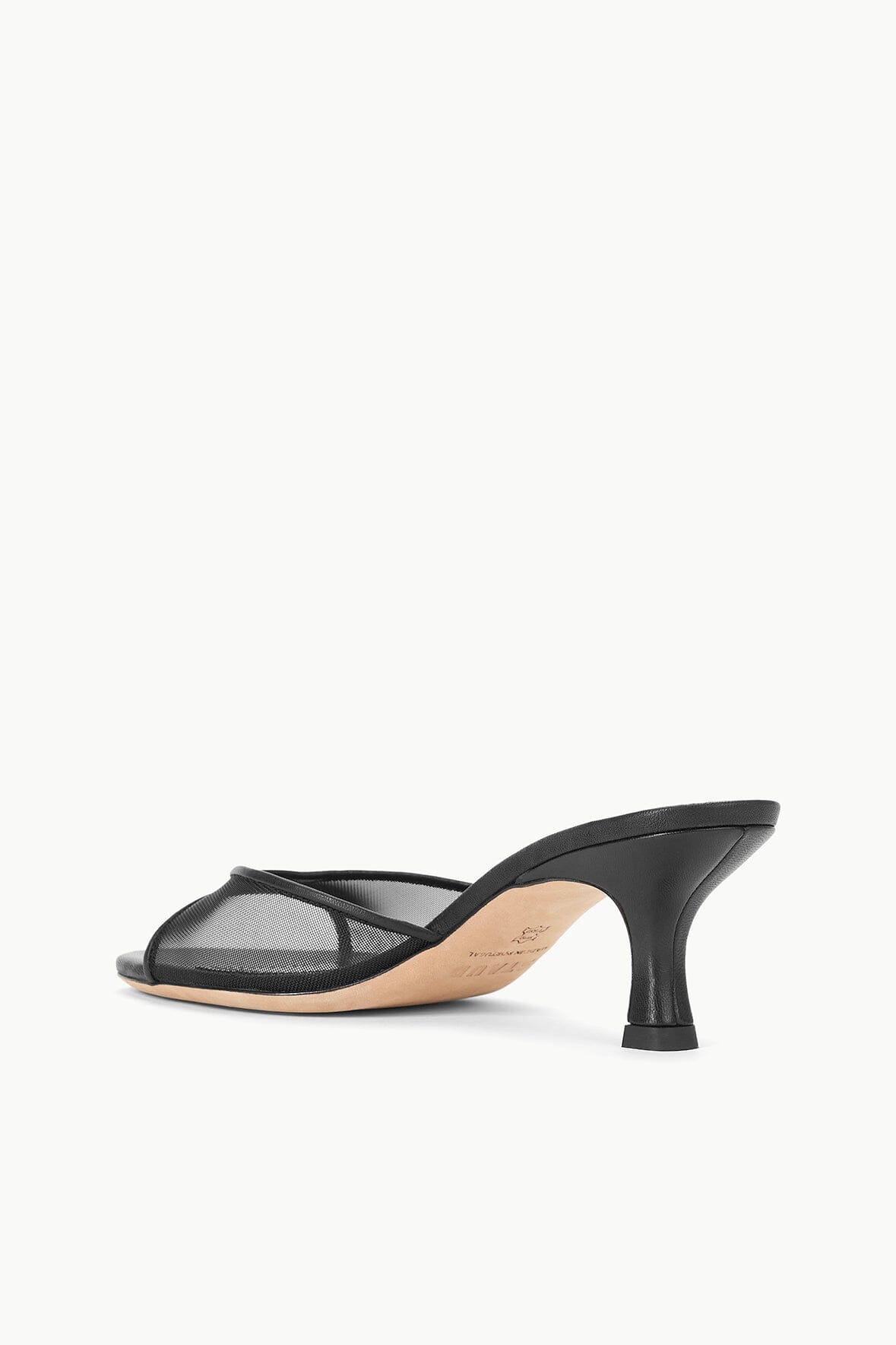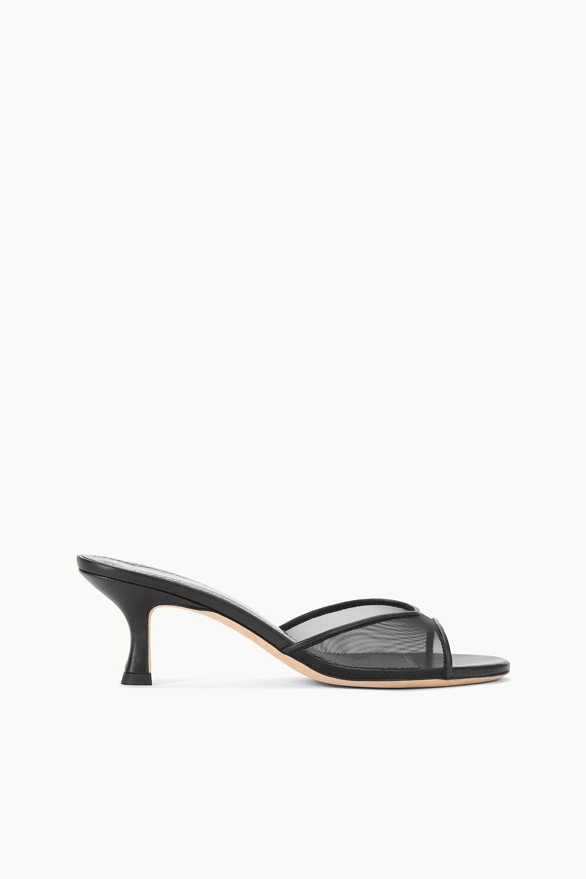 An open-toe mule crafted with mesh and soft nappa leather, the Brigitte is an essential kitten heel for versatile dressing.