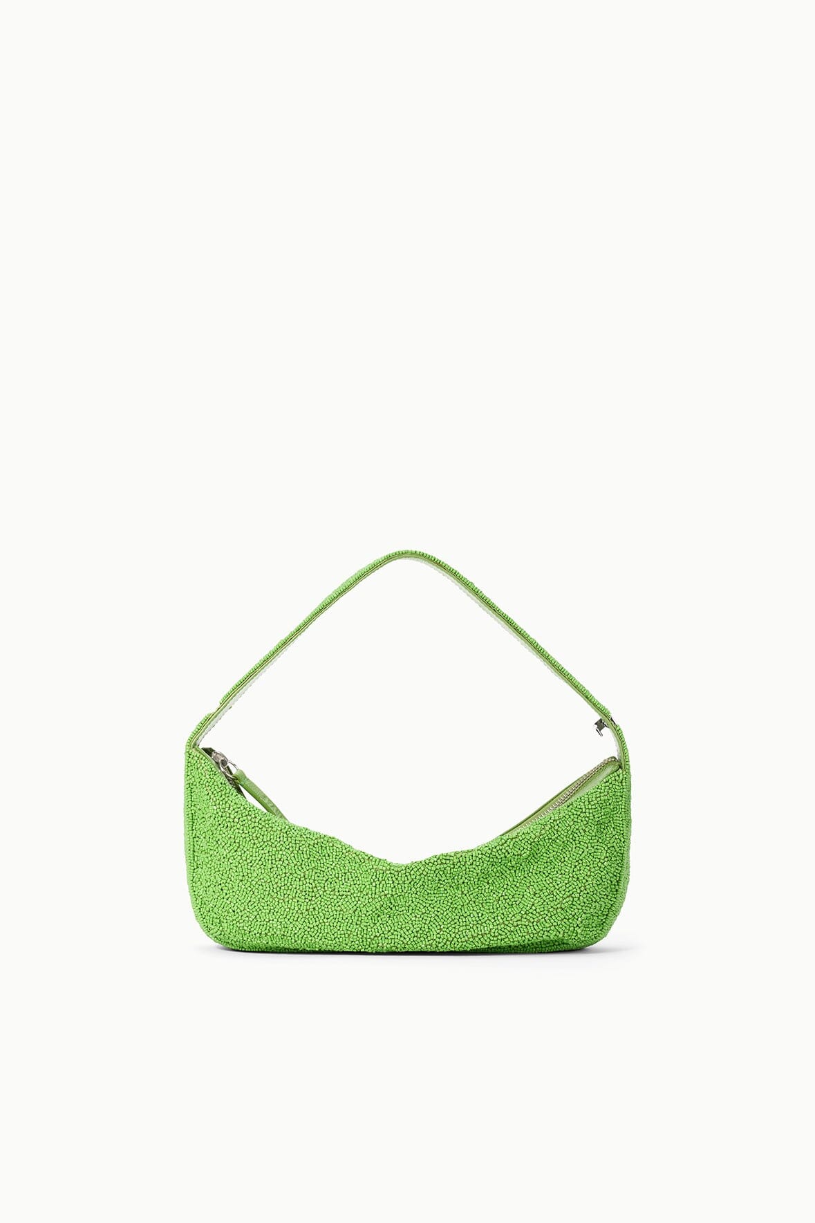 The Demy Shoulder Bag is a chic convertible bag that can be worn over the shoulder or hand held. It features signature hardware clasp on the strap to convert the shape to a handheld pouch. This style features a fully beaded body, a top zipper, and signature hardware.