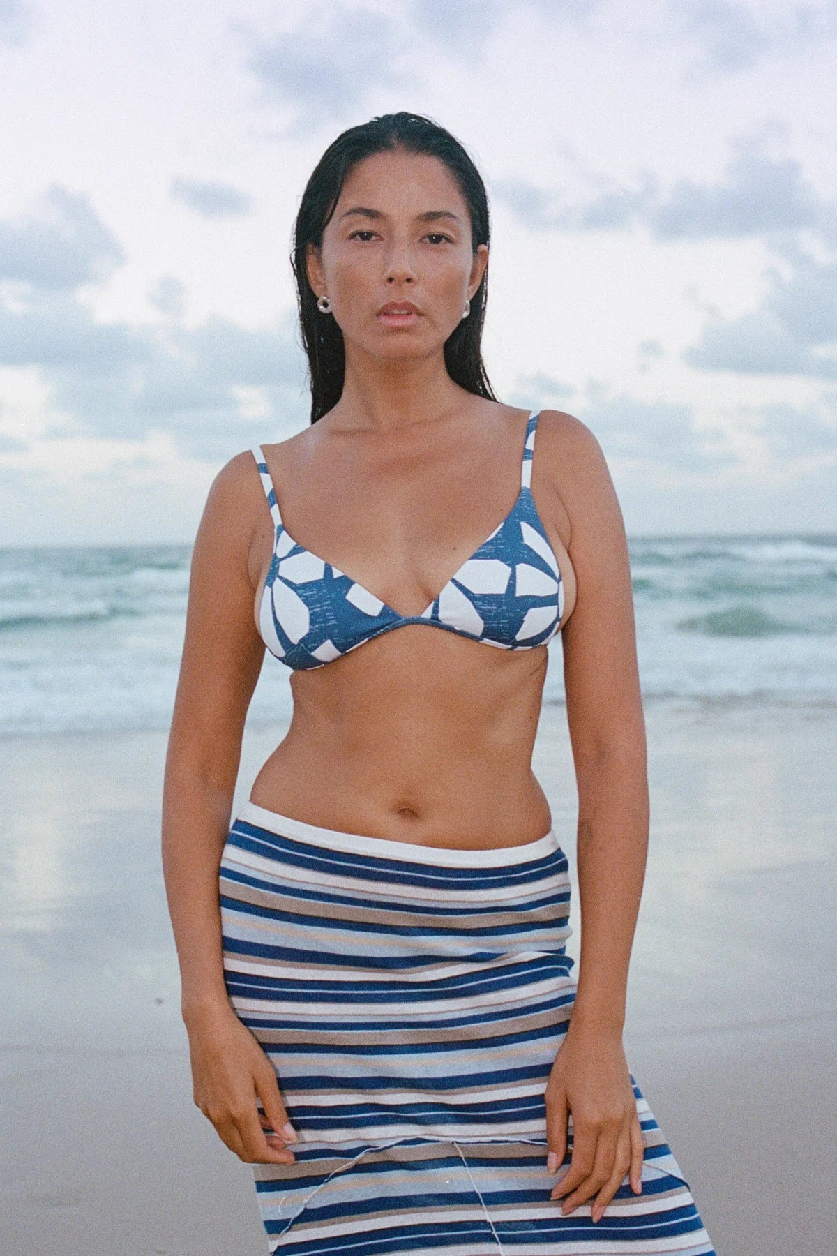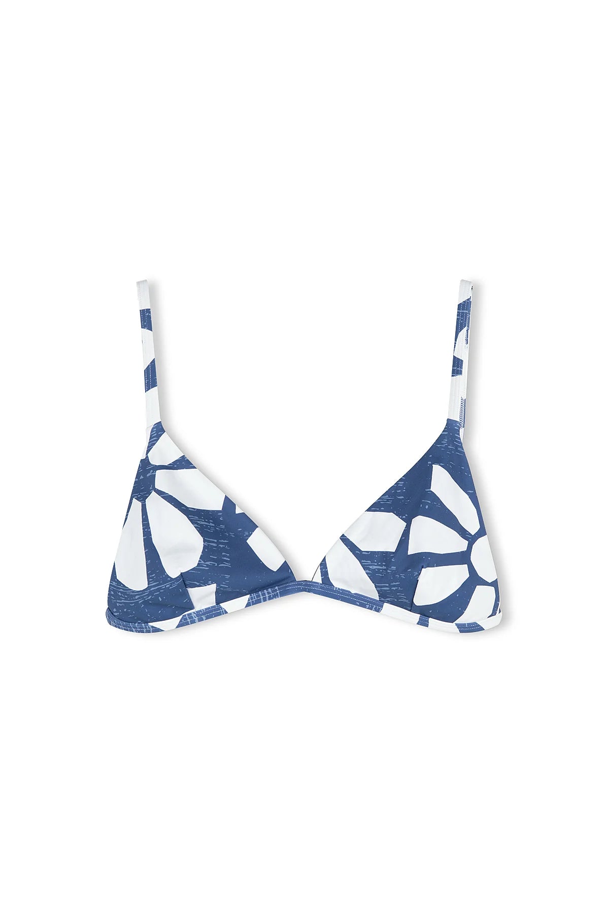 The Geo Flower Triangle features a soft triangle cup, adjustable fine straps, and a sleek back clasp. Its hand-painted geo flower print, exclusive to ZZ, is the standout pattern of the season. Pair it with the Geo Flower Curve Brief for a perfectly matched set.