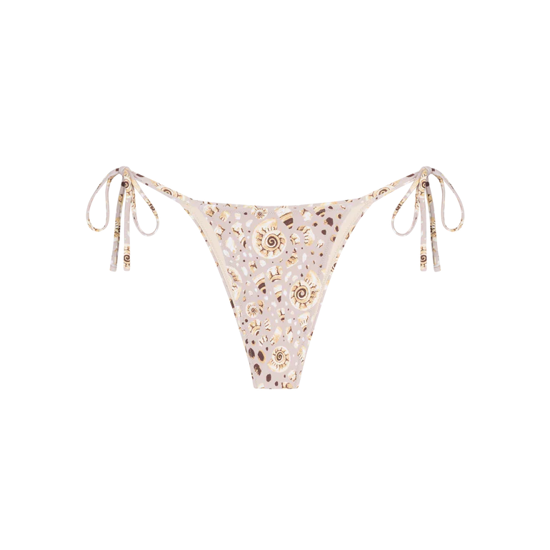 Meet Minerva — our most playful and petite tie bottom yet. Designed for minimal tan lines and maximum cheekiness, this style features delicate side ties and is adorned with amber-colored beads. Perfectly paired with the Hera Top, the Minerva adds a hint of boho charm to your swimwear collection.