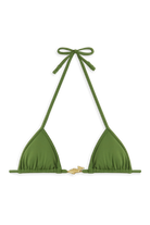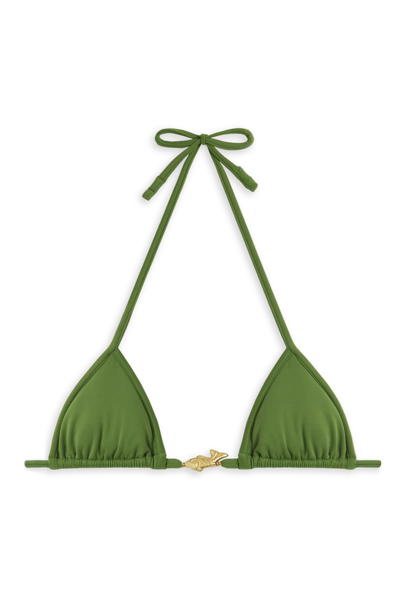 Splash takes the teeny bikini to new levels. With adjustable straps and cups, this triangle bikini top features minimal coverage for maximum cleavage. It’s adorned with gold-plated fish-shaped embellishments handmade in Venice from nickel-free, chlorine- and salt-resistant metal.