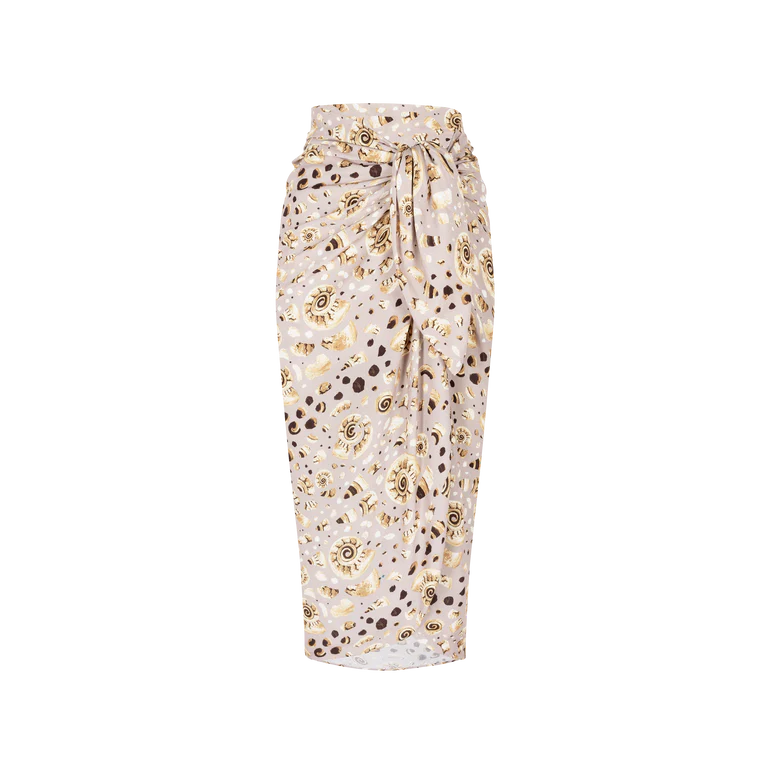 The soft drape of our new sarong is the perfect beach to bar accessory. It’s crafted from airy recycled material printed with a this season's motif and ties simply to the side, creating an asymmetric hemline.