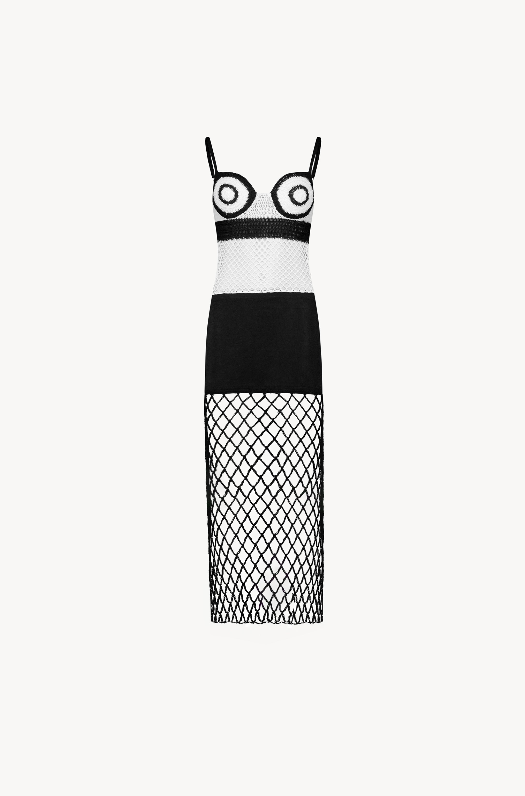 Crafted entirely from black-and-white crochet, La Femme’s sharp lines and see-through textures sculpt the silhouette with graphic precision and sun-drenched attitude.