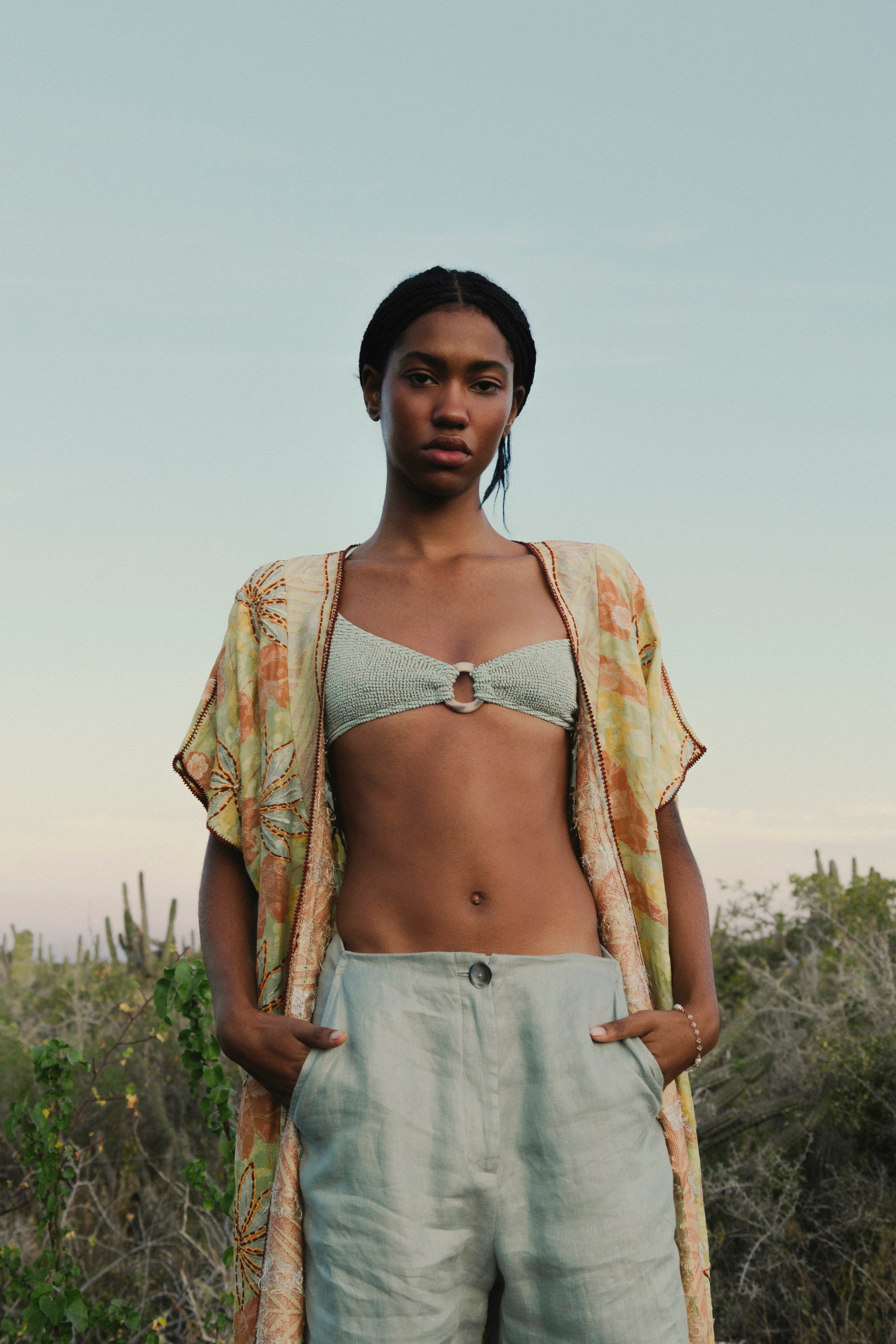 HAND.SO.ON is a unique collection that blends Indian sari traditions and Moroccan hand-finishing, celebrating ancestral craftsmanship through recycled silk crepe saris reimagined in a Western bohemian couture spirit.