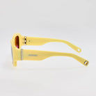 The Croisiere frame blends a rectangular silhouette with pastel yellow striped acetate and brown lenses. Sculpted nose pads and gold-detailed temples bring signature elegance
