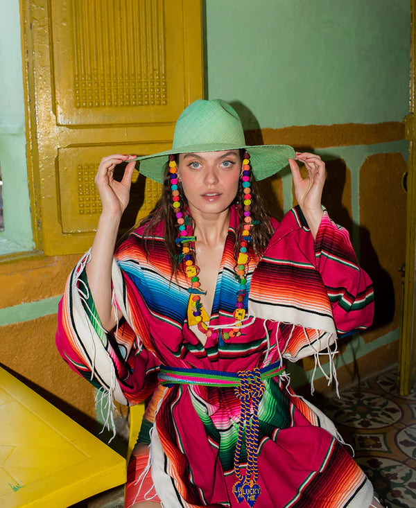 The Colorful Bird Hat was designed to be worn on your most adventurous days. It comes with a colorful Mini Pajarito strap designed and developed in partnership with female artisans in Nariño, Colombia. Every little ornament of it - the palm trees, the houses, and the birds - was handwoven with love to convey a powerful message: the importance of nature, family, and freedom.