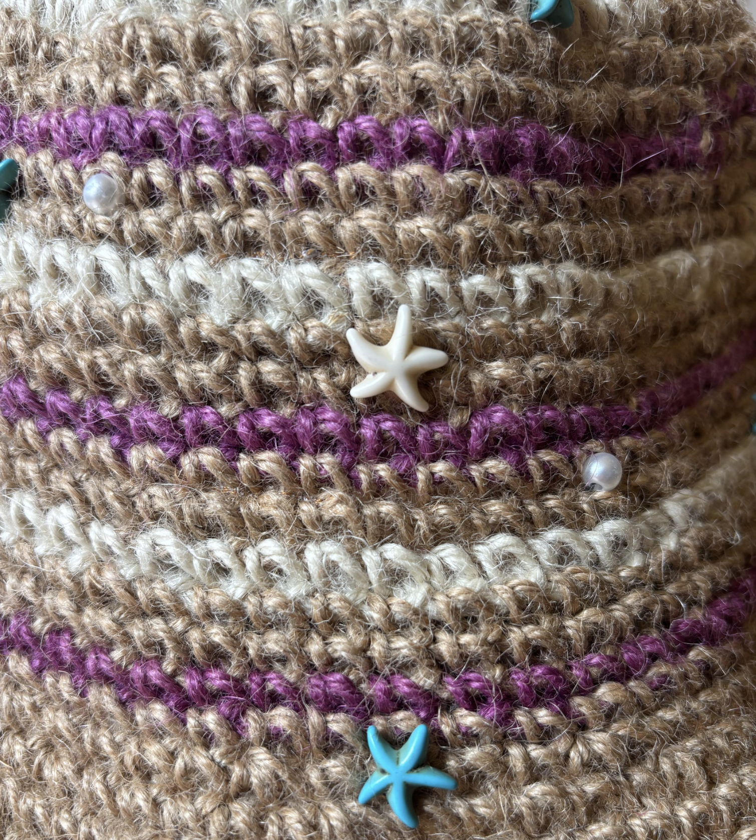 The MAR model is distinguished by its crochet hat with geometric patterns and decorations. A bold twist on traditional south american craftsmanship. A unique hat, colorful and handmade.