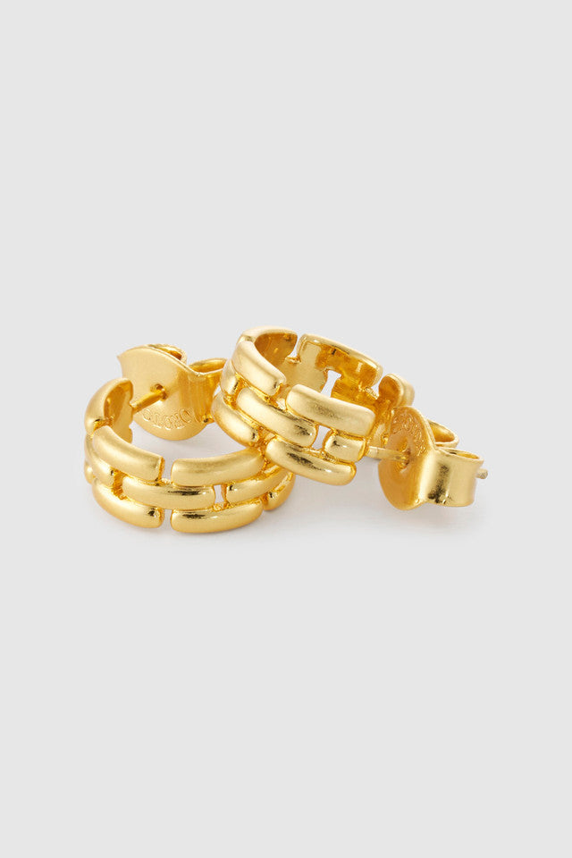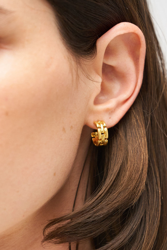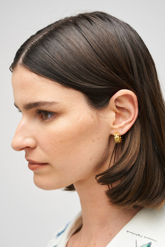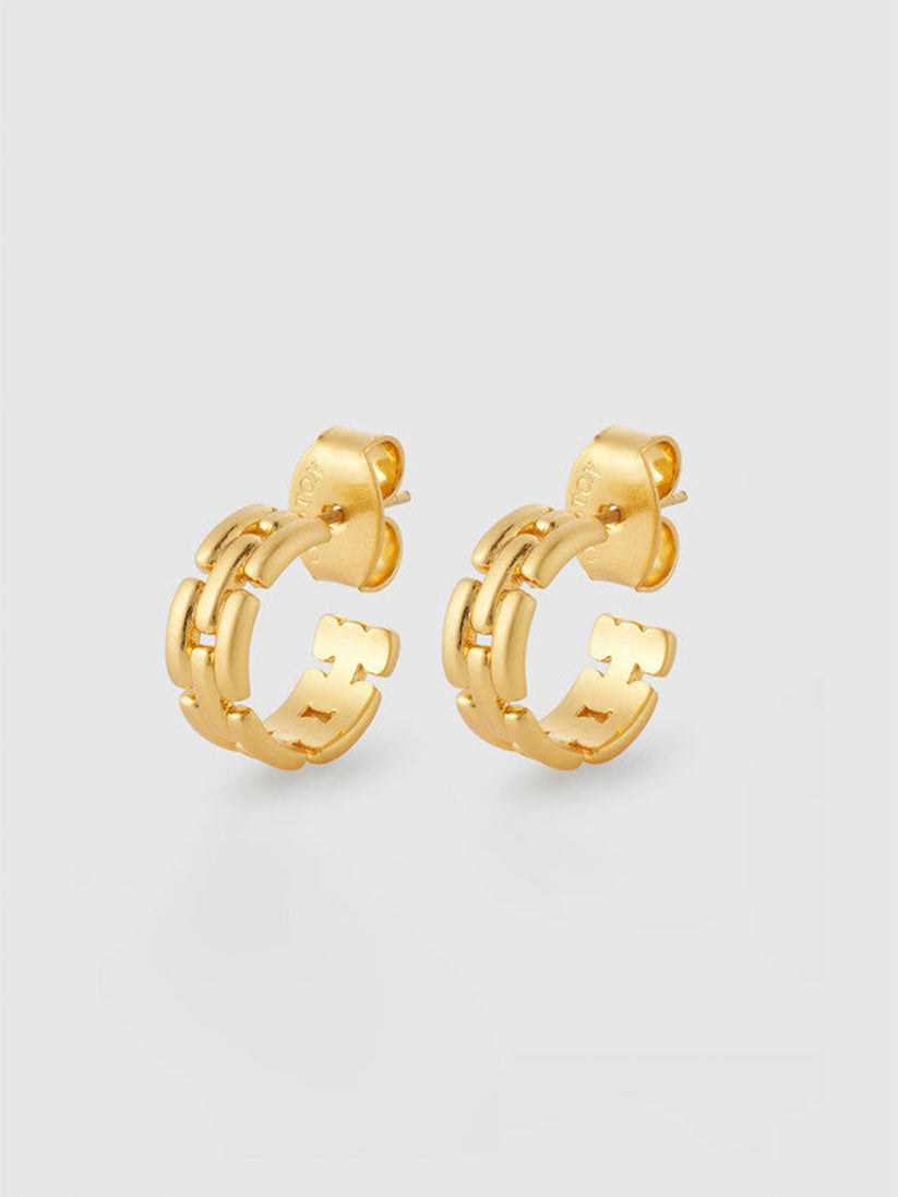 Make a bold statement with Oroton's Kylo Mini Hoops in worn gold. Crafted in 18k gold-plated brass, these chic 14.3mm hoops are the perfect mix of subtle elegance and modern edge. Lightweight and versatile, they’re your go-to accessory for adding a touch of effortless glamour to any look.
