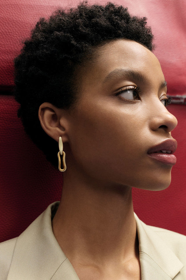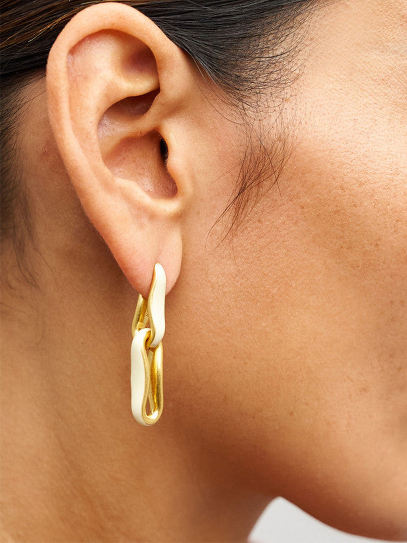 Elevate your earring game with Oroton's Livia Drop Earrings. These brass beauties boast an 18K worn gold finish, exuding a timeless elegance that's perfect for any occasion. The magic lies in their versatility – thanks to a removable drop link, you can switch between a subtle stud and a statement drop in seconds. Hand-applied antique cream enamel adds a touch of vintage charm, while the secure hinge post and clasp ensure they stay put all day (or night) long. Whether you're dressing up for a fancy dinner or adding a touch of glam to your everyday look, these adjustable earrings have got you covered. Who said you can't have your cake and wear it too?