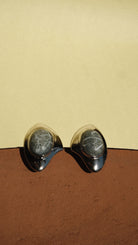 Silver geometric shape earring with grey detailed stone