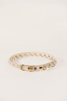 The Revenge belt reimagines punk defiance with pierced smooth Italian calfskin suede, with hand-placed silver grommets and rings that channel audacious, subversive elegance.
