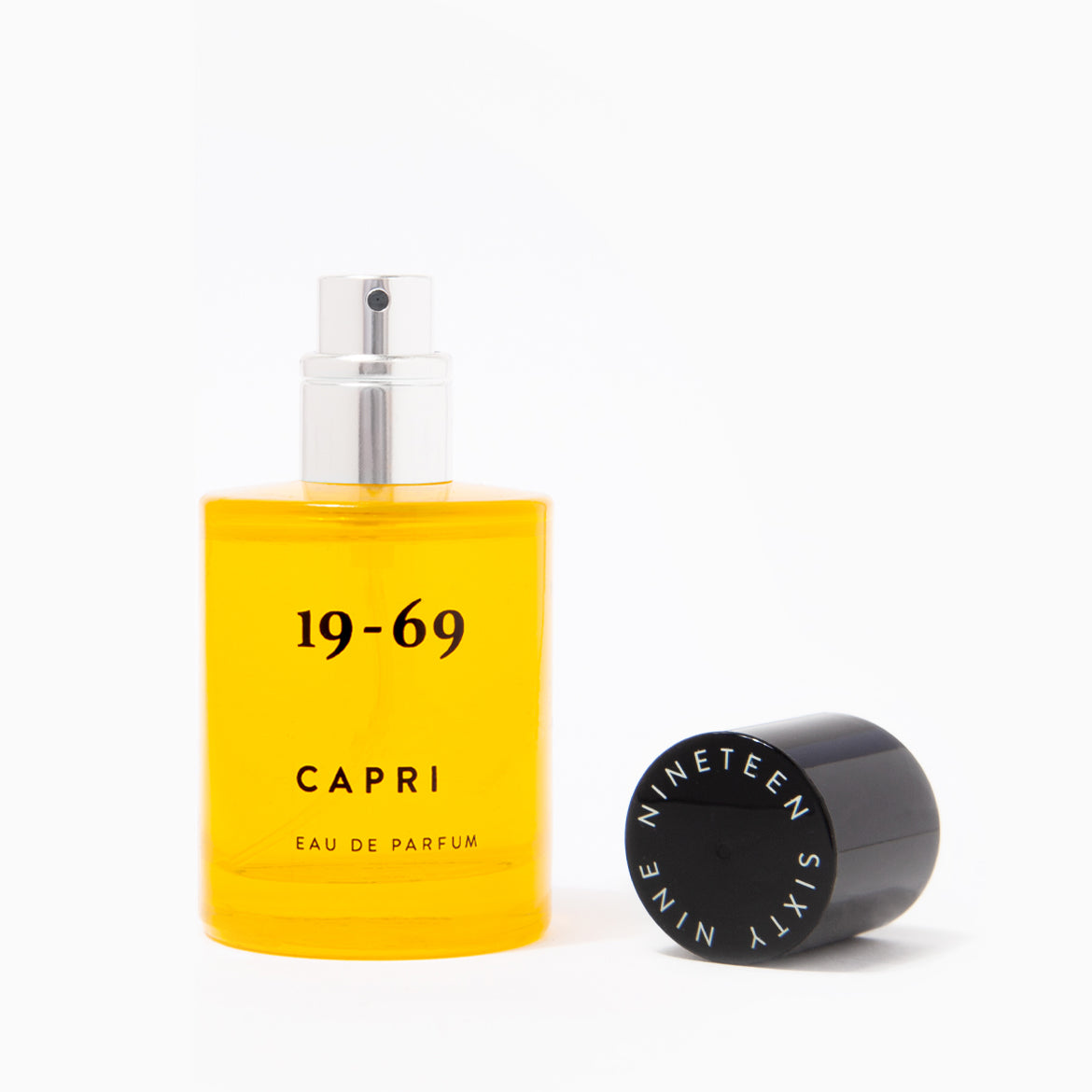 "Capri by 19-69 is inspired by the stylish and iconic movie Le Mépris, which was shot in 1963 on the Isle of Capri. The settings include Villa Malaparte and the motion picture incorporates a scheme of red (tolerance, love), blue (coldness) and white (neutral) referring to the national flags of France and USA, evocative of the thematic elements of the narrative."