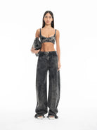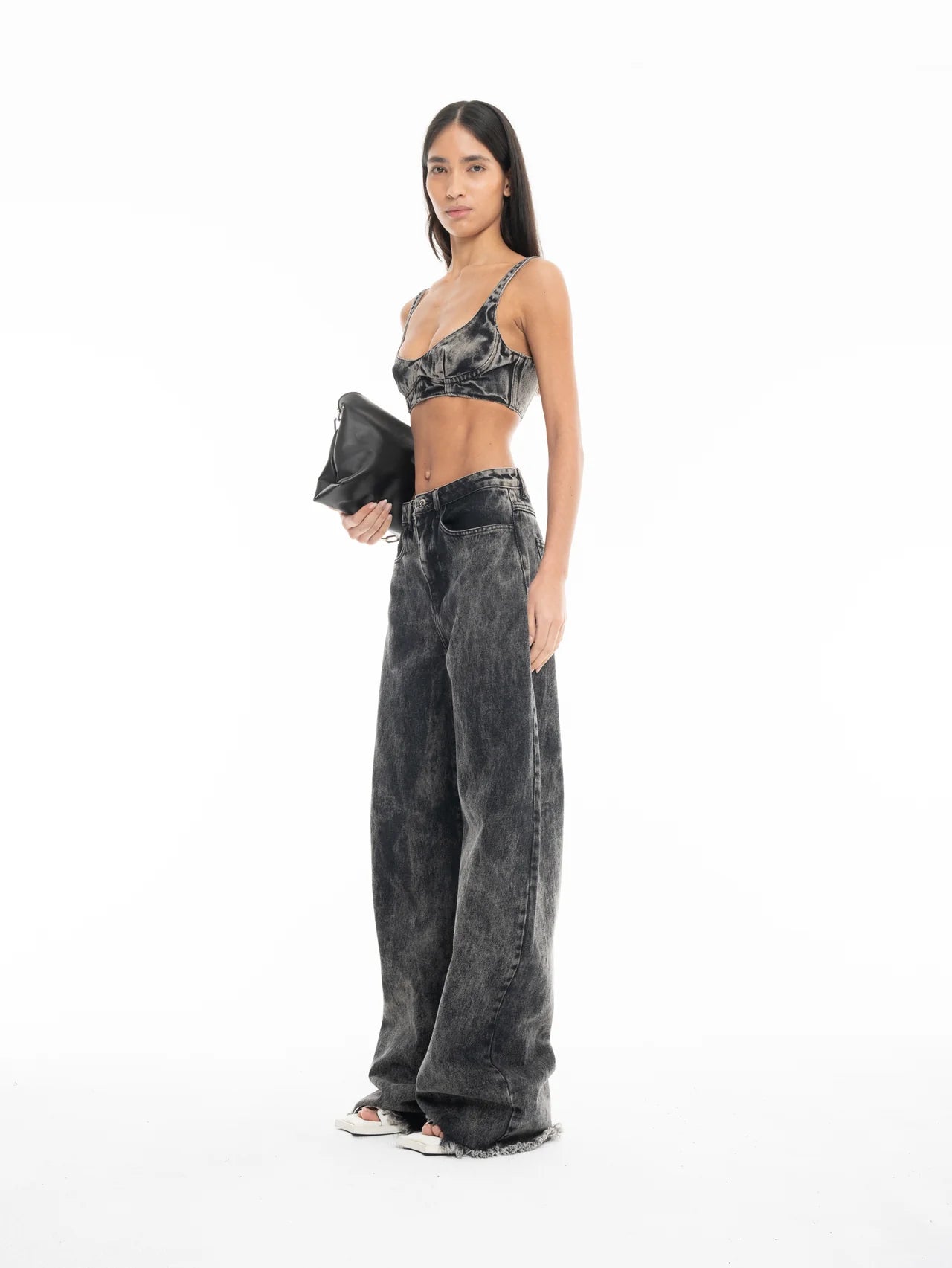 Discover the effortlessly chic aesthetic of the Classic M'A 5-pocket boyfriend jeans in black acid wash denim. These wide-leg jeans boast a relaxed fit, five-pocket design, and raw hems for a casual yet trendy feel.