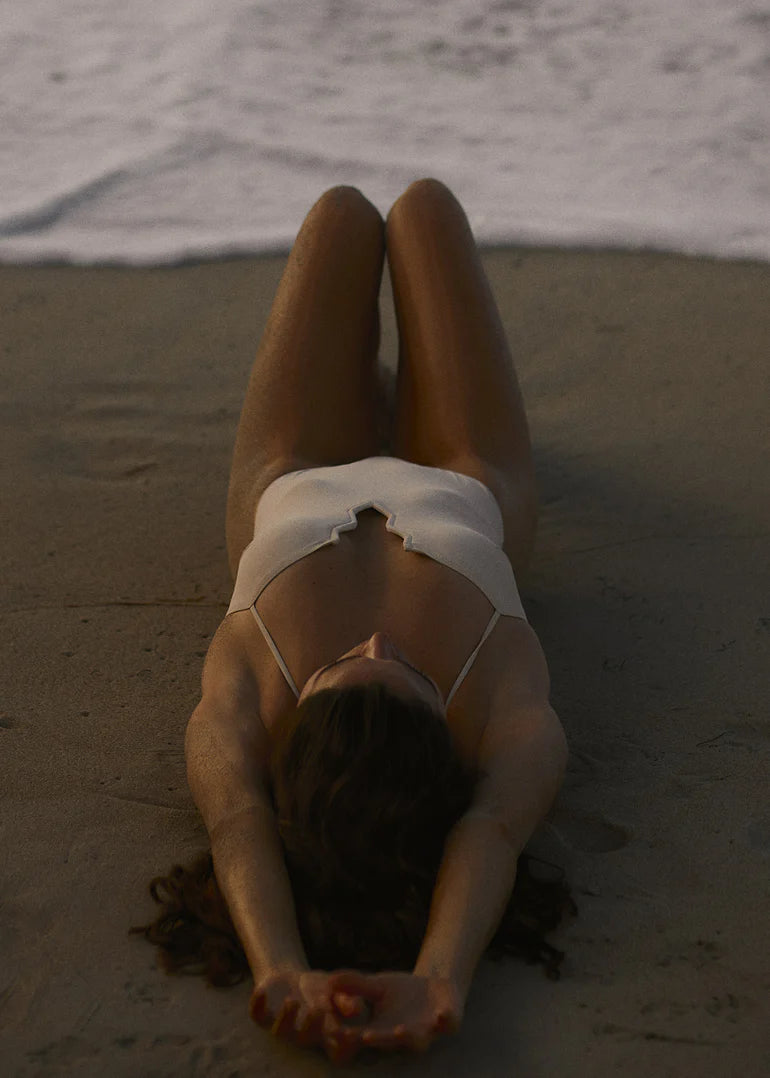 Their best selling one piece features adjustable spaghetti straps, a striking zig-zag detail and straight neckline. The Regatta has a high cut leg and a moderate coverage bottom.