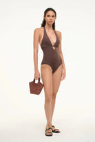 The La Jolla One Piece is our first halter one-piece, featuring a low back and cheeky bottom coverage. This swimsuit features our moon buckle detailing and light ruching at the bust.