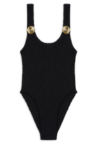 The Tita swimsuit is proof that a one piece can be simple, sleek and incredibly chic. Its clean neckline and balanced straps frame the shoulders beautifully, while the high-cut leg subtly elongates the silhouette and gives a soft nod to ’90s swim icons.