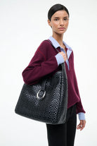 - Leather Woven Tote Bag