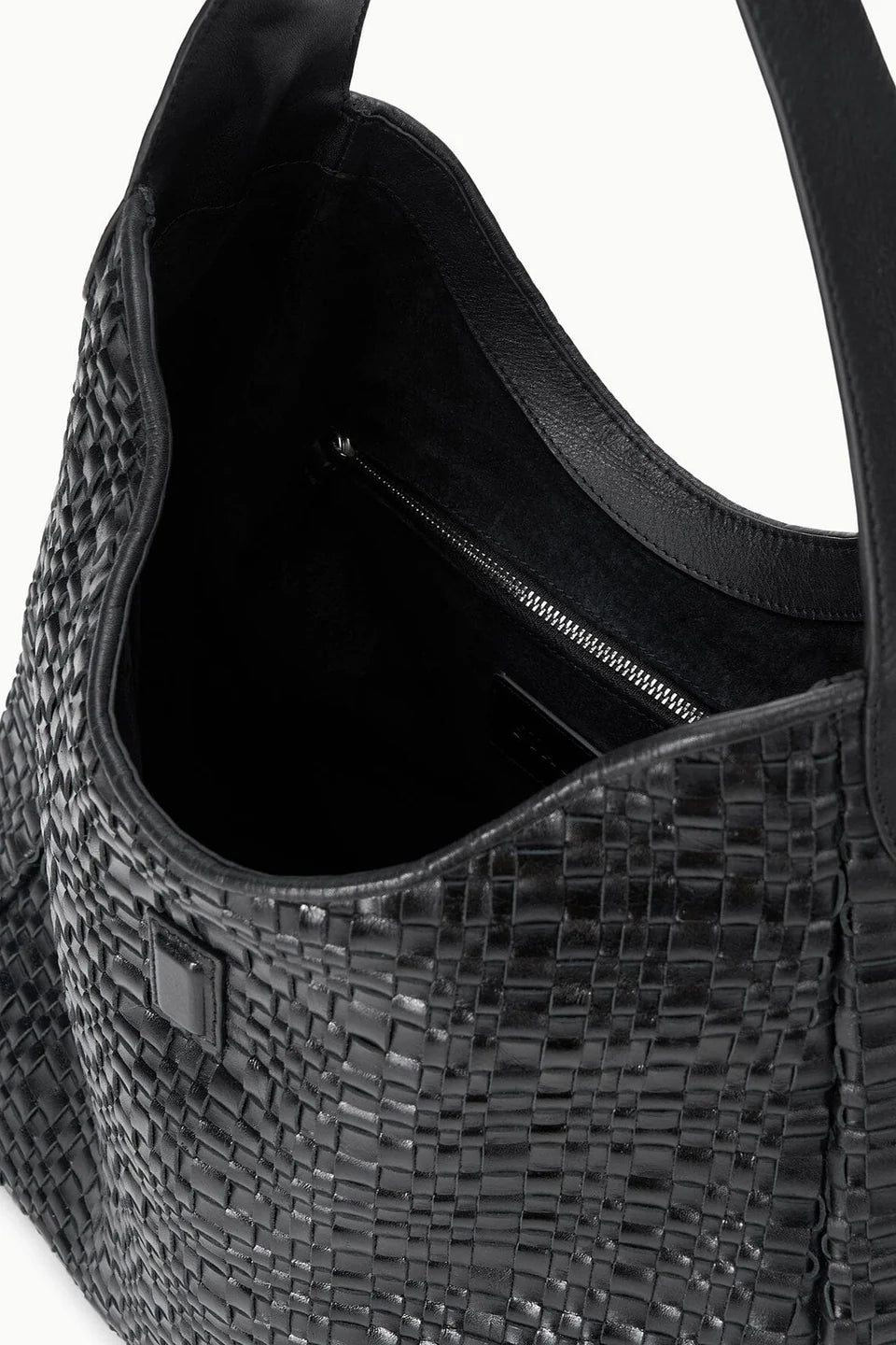 The Maya is a woven leather hobo bag featuring our signature moon buckle hardware at the end of the tab closure. It features a wide, comfortable shoulder strap and an interior zip pocket.