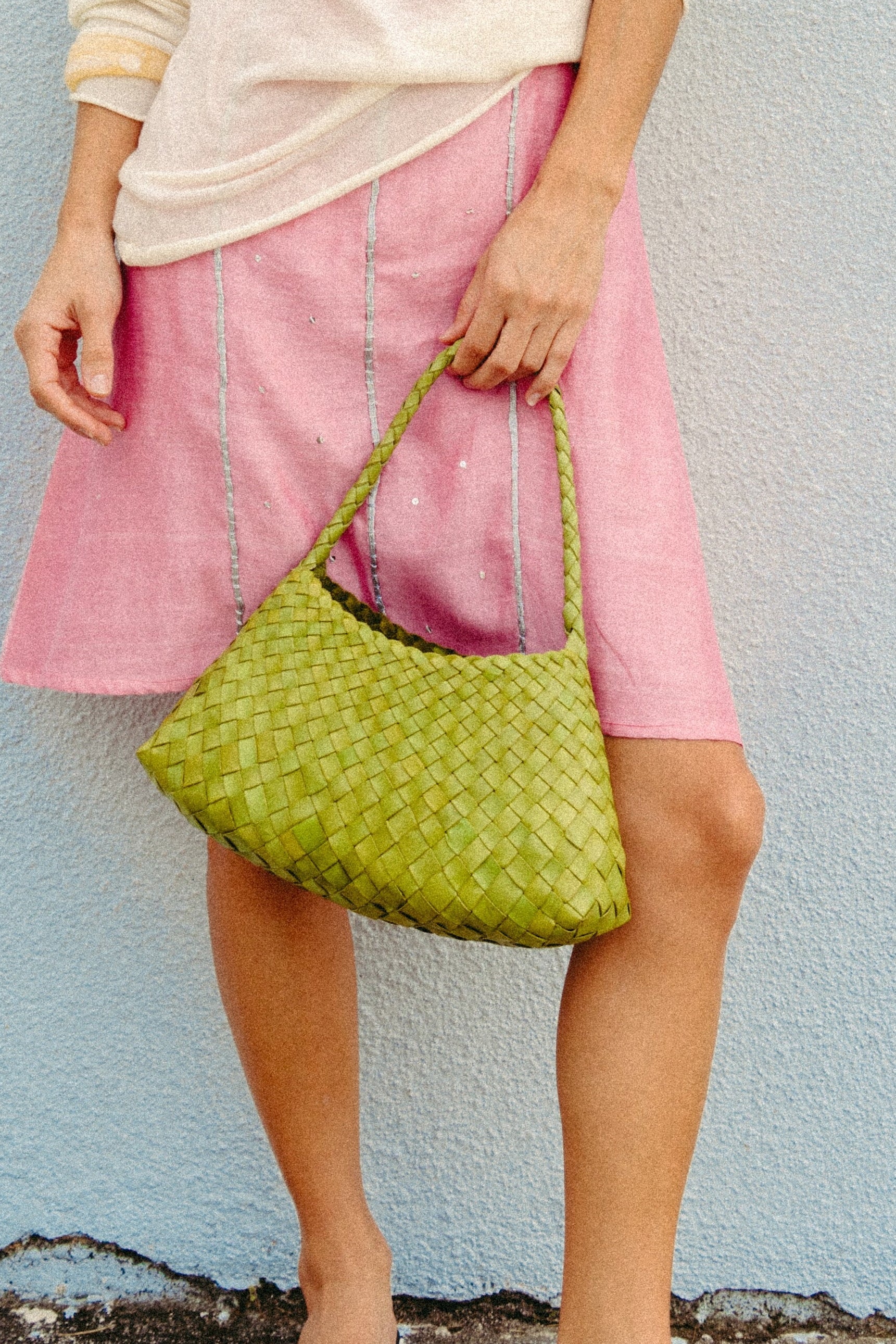The Rosanna bag is a refined take on Dragon Diffusion’s artisanal craftsmanship. Handwoven from supple leather with an irregular, tapering weave, it nods to the beloved Santa Croce while offering a sleek, shoulder-hugging silhouette.