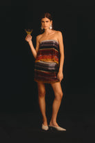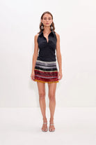 Low-rise mini skirt with intricate hand-beaded detailing. Fully lined and heavy due to the artisanal beadwork.