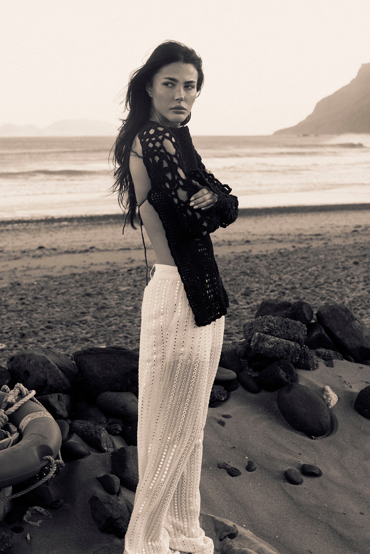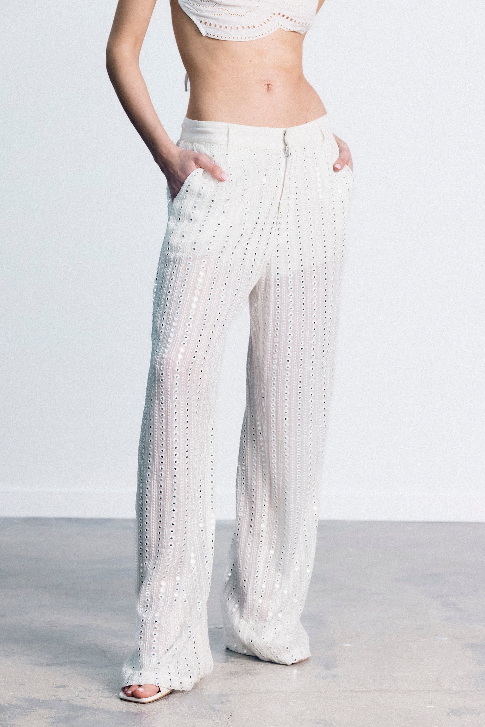 The trousers comes in two sizes, models is wearing size small and is 170 and 176 cm
