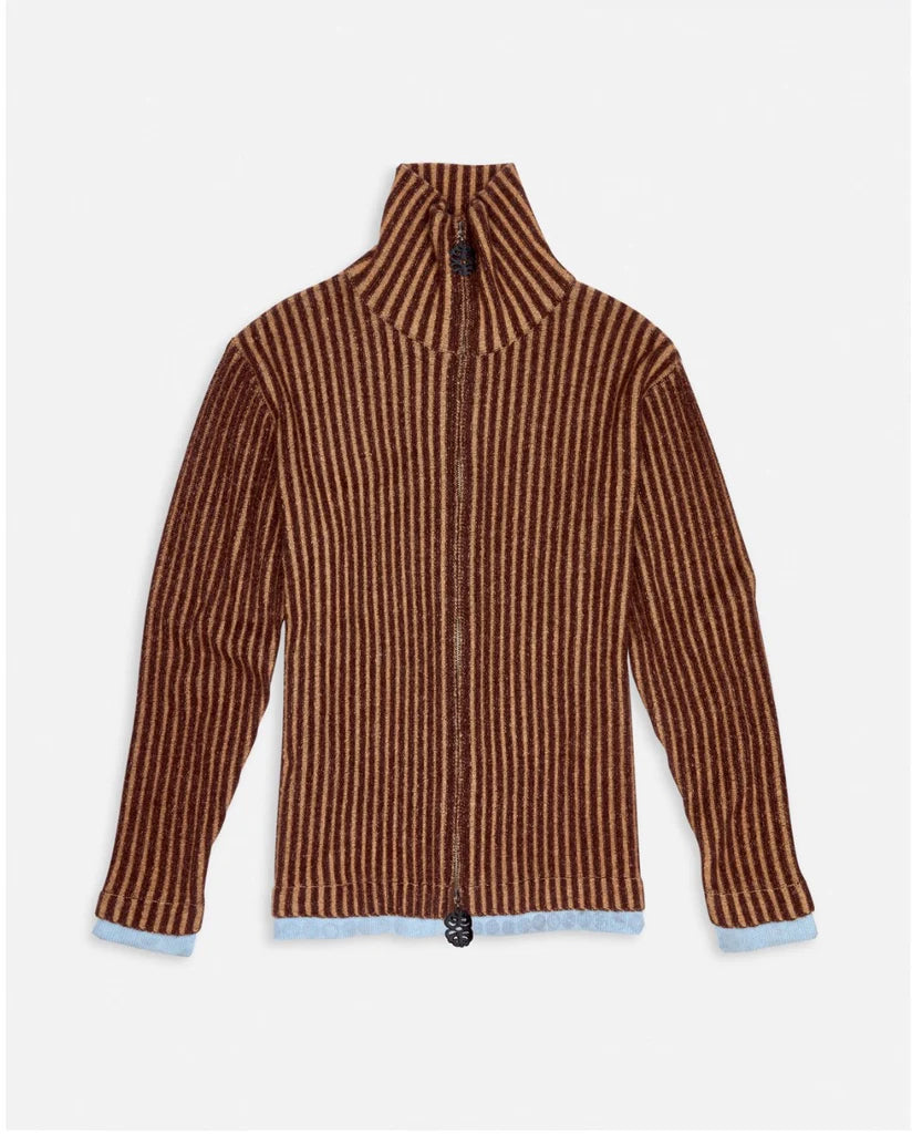 Adrian Cashmere's unisex ribbed zip is made of 100% cashmere and features a custom-molded metal double-zipper with a frayed edge. The fit is slightly oversized, for a more classic fit consider sizing down. All designs and details are hand drawn by Adrian Schachter.
