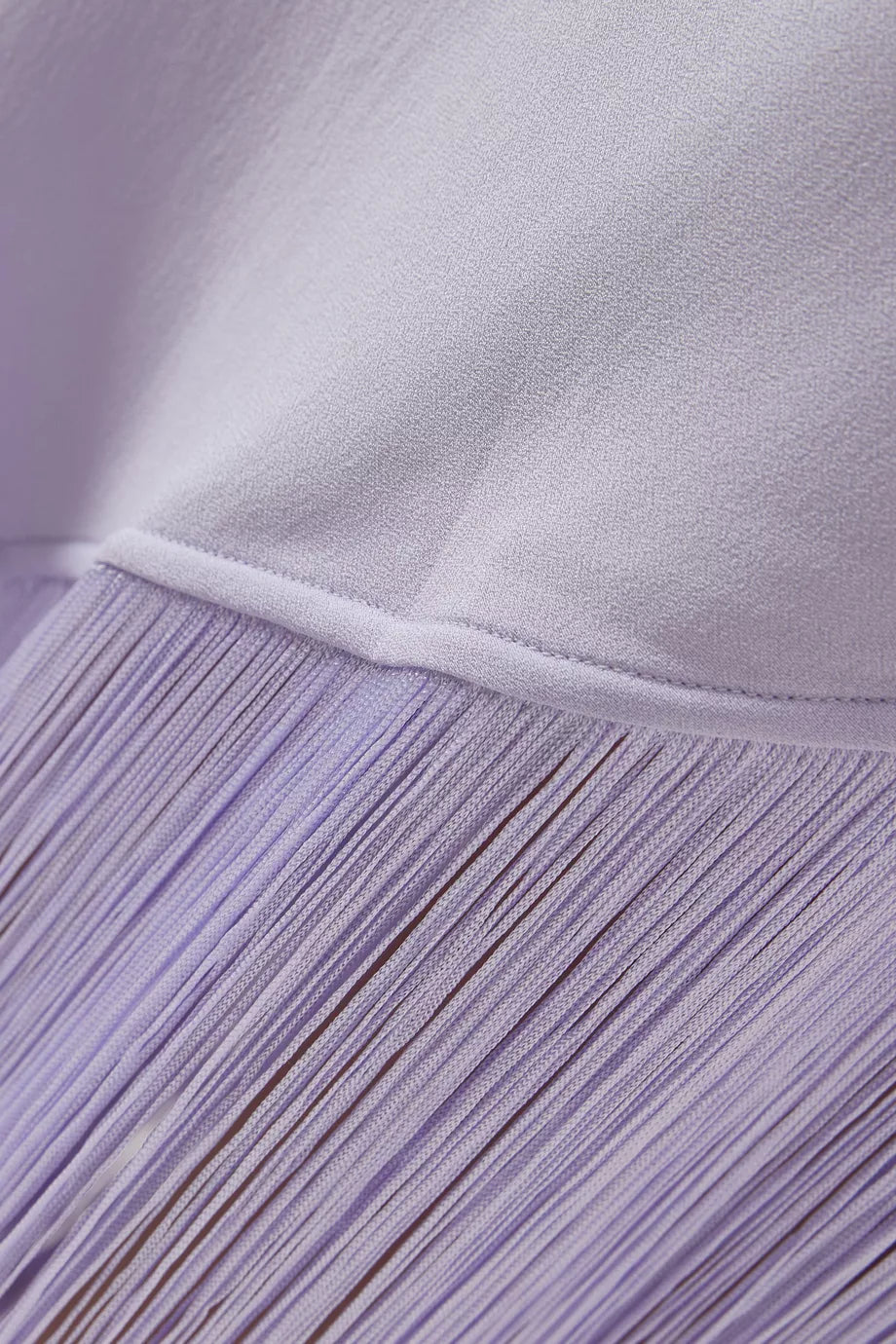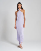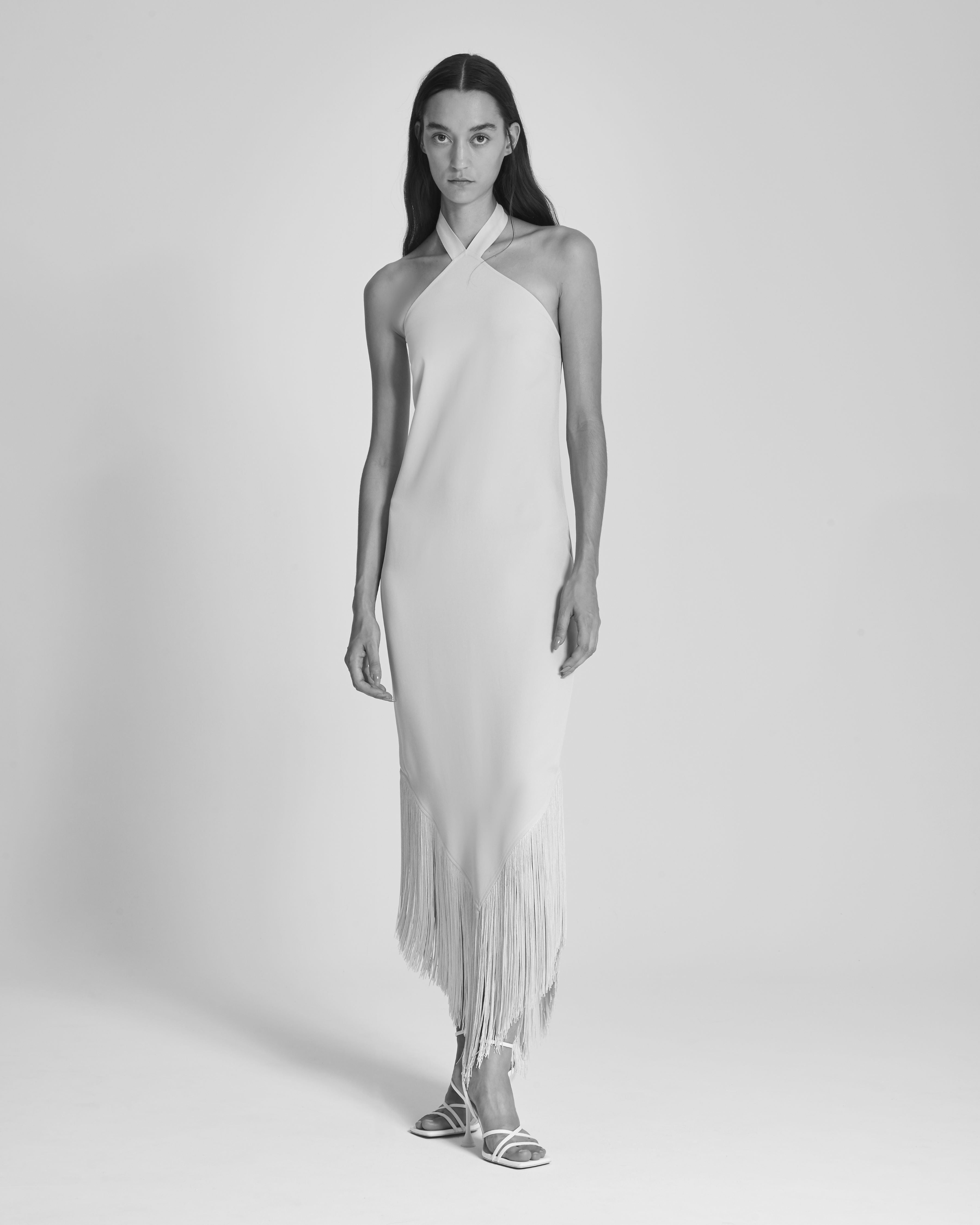 The Nina dress is an effortlessly feminine offering from Taller Marmo. Crafted in Italy by the label's talented artisans, this occasion-ready style is detailed with a shoulder-baring halter neckline and an angled hem that is trimmed with swishy fringing.