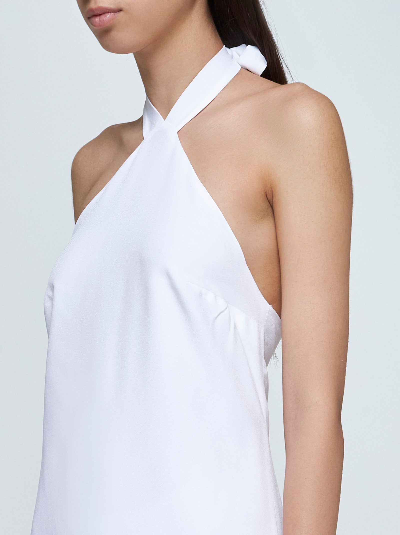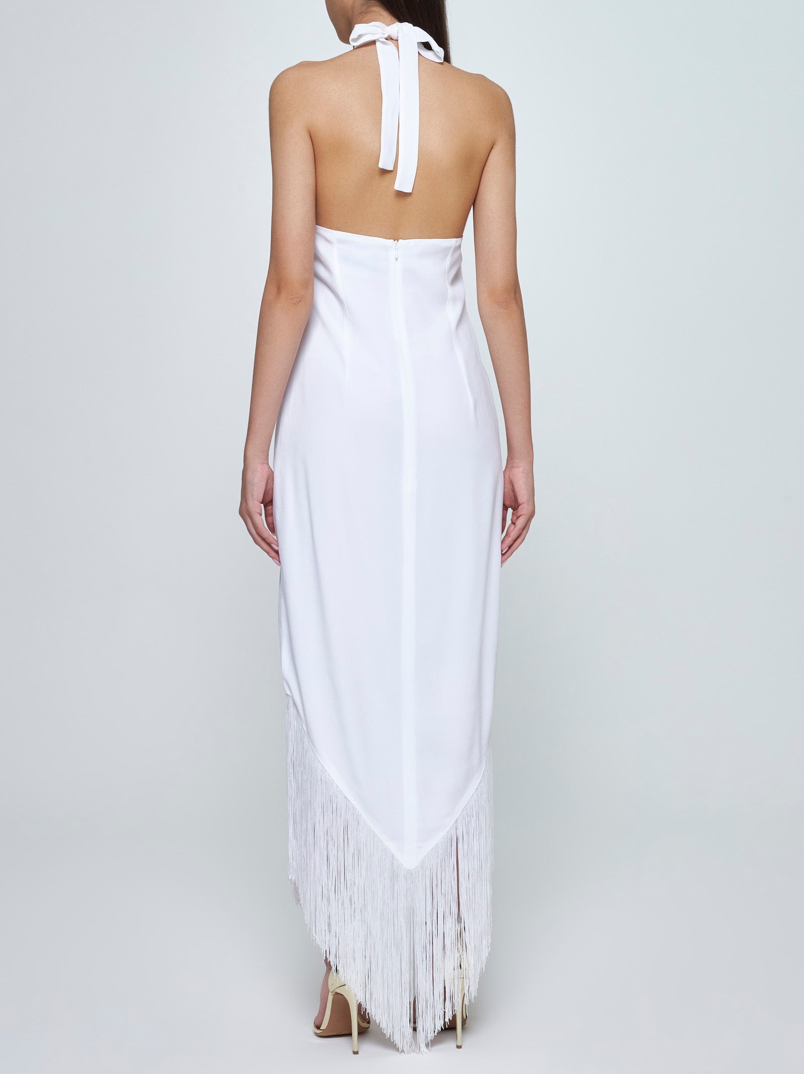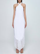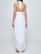 The Nina dress is an effortlessly feminine offering from Taller Marmo. Crafted in Italy by the label's talented artisans, this occasion-ready style is detailed with a shoulder-baring halter neckline and an angled hem that is trimmed with swishy fringing