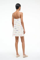 The Laura Mini Dress is an update to our best selling maxi dress silhouette. This style features a straight neckline, spaghetti straps and a playful seasonal print.