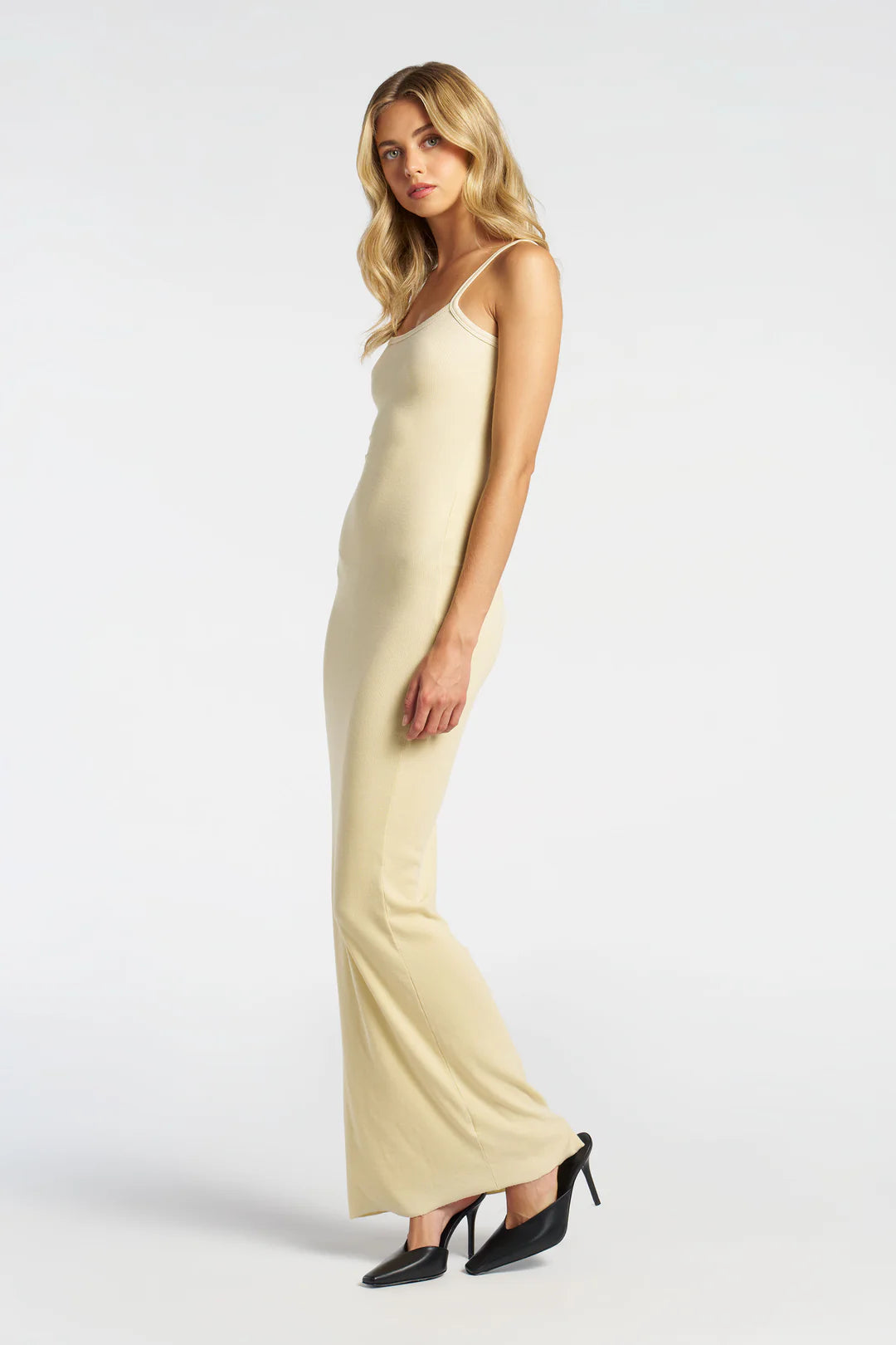 Inspired by the essential Spaghetti Tank, the new Verona Spaghetti Maxi Dress is crafted from a soft cotton-modal baby rib jersey in a form-hugging full length silhouette. This elevated, easy-to-wear dress has a scoop neckline and thin shoulder straps, making it a warm weather must-have or flattering year-round base layer.