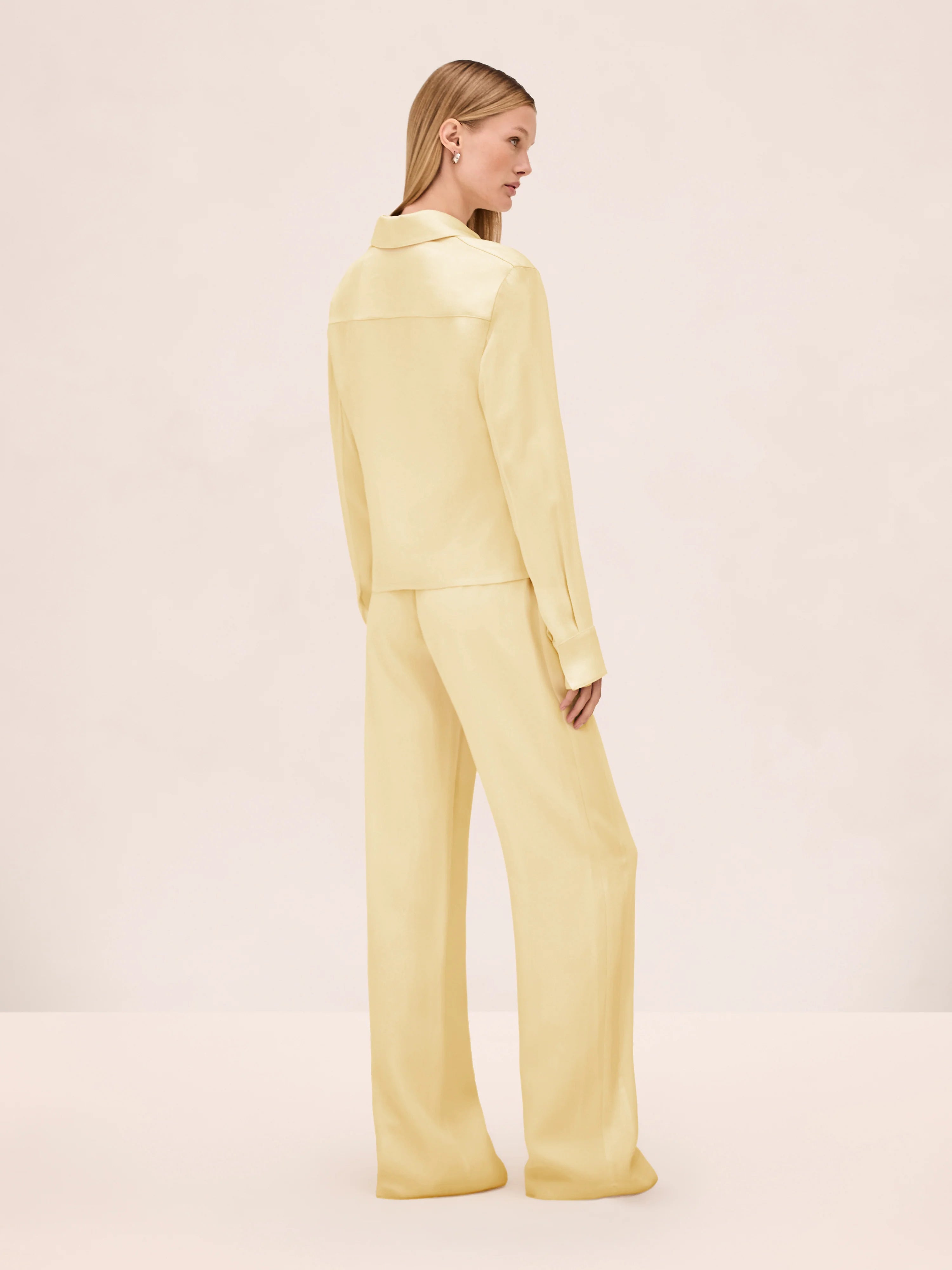 The Rowen Top is a zip-front collared design with a relaxed fit, paired with the Damian Pant.