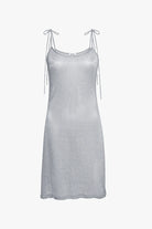 This Cami tie dress is crafted from Italian metallic maille, this mini dress features a slightly A-line shape, delicate self tie straps and a scoop neckline for easy, adjustable wear.